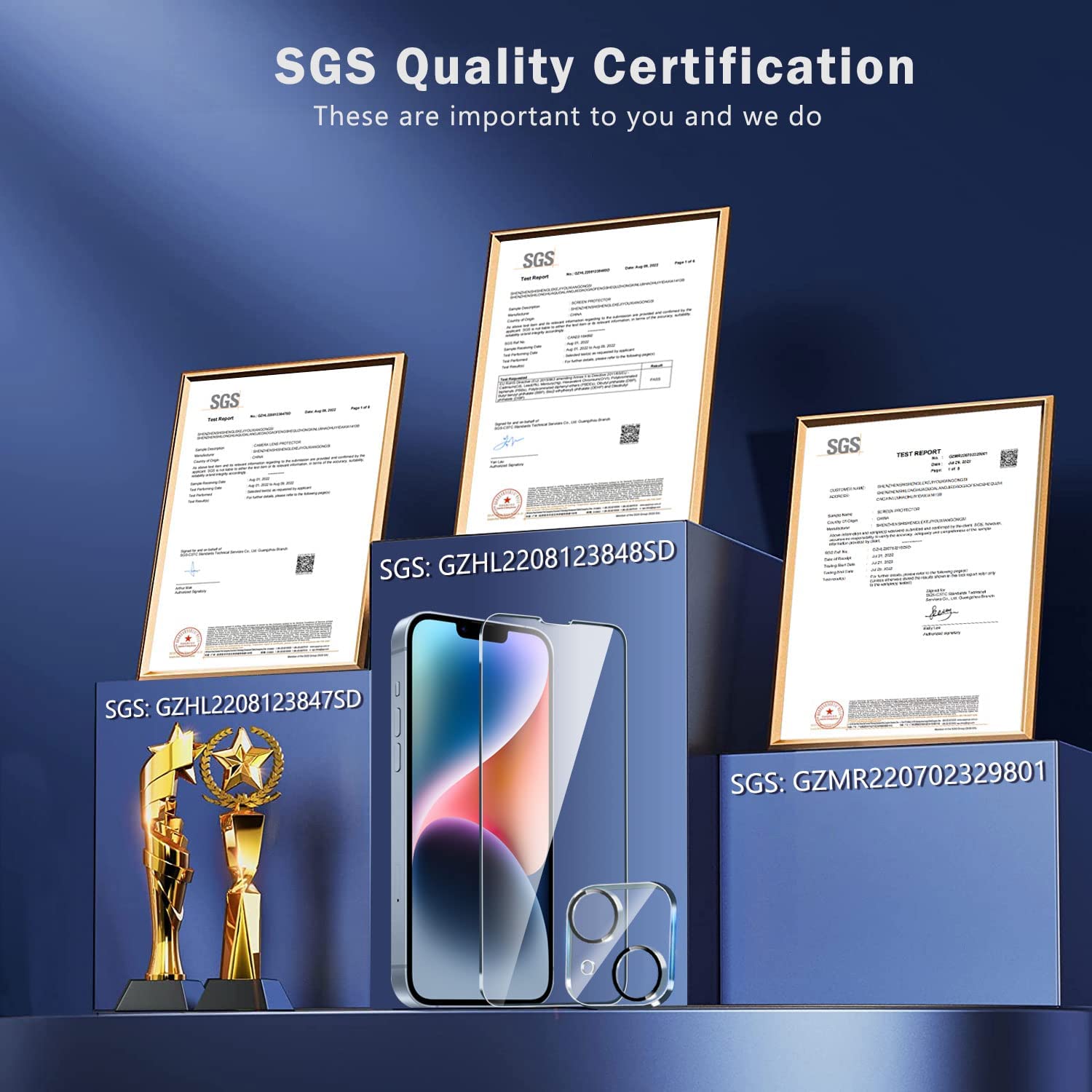 • [RoHS Environmental and SGS Drop Test Certification]: QHOHQ tempered glass and camera cover with 9H hardness tested, SGS-certified screen protector can withstand a 6-foot drop without damaging your phone screen,and reach 99.99% light transmission test (SGS certificate NO.: GZMR220702329801); At the same time, the products have passed the RoHS environmental protection test report (certificate NO.: GZHL2208123848SD and GZHL2208123847SD), meet international environmental standards.