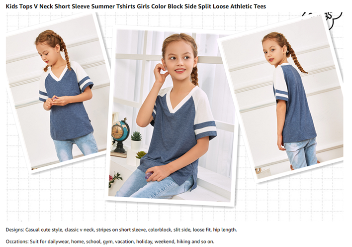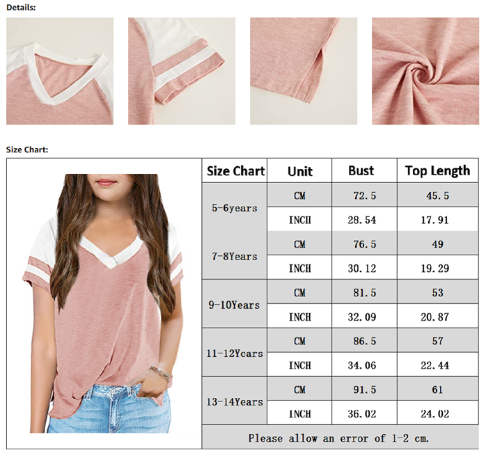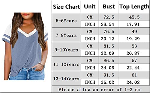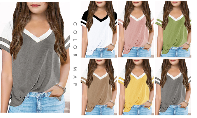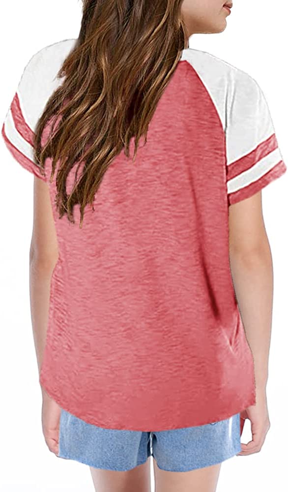 Kids Tops V Neck Short Sleeve Summer Tshirts Girls Color Block Side Split Loose Athletic Tees