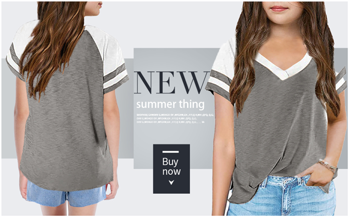 Designs: Casual cute style, classic v neck, stripes on short sleeve, colorblock, slit side, loose fit, hip length.