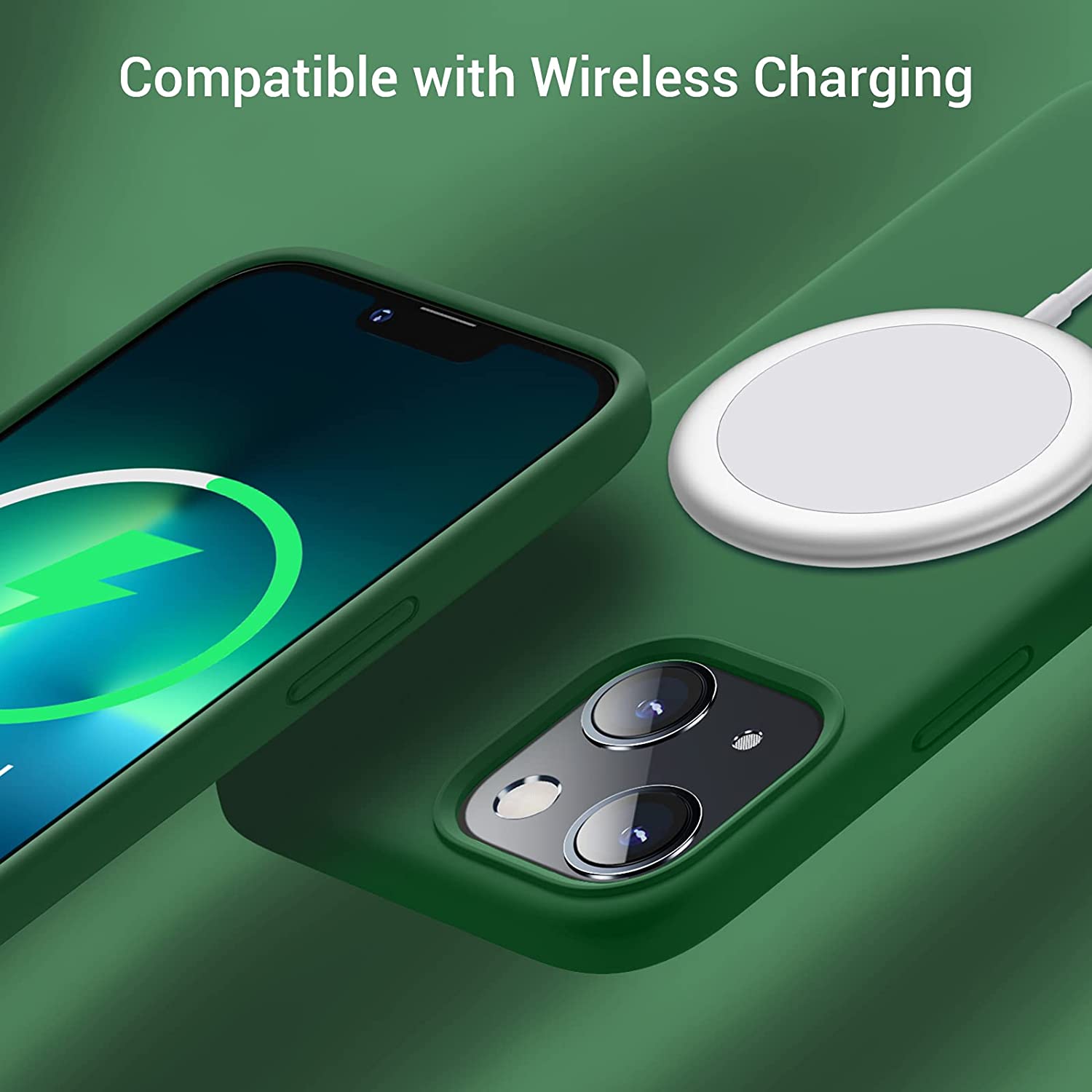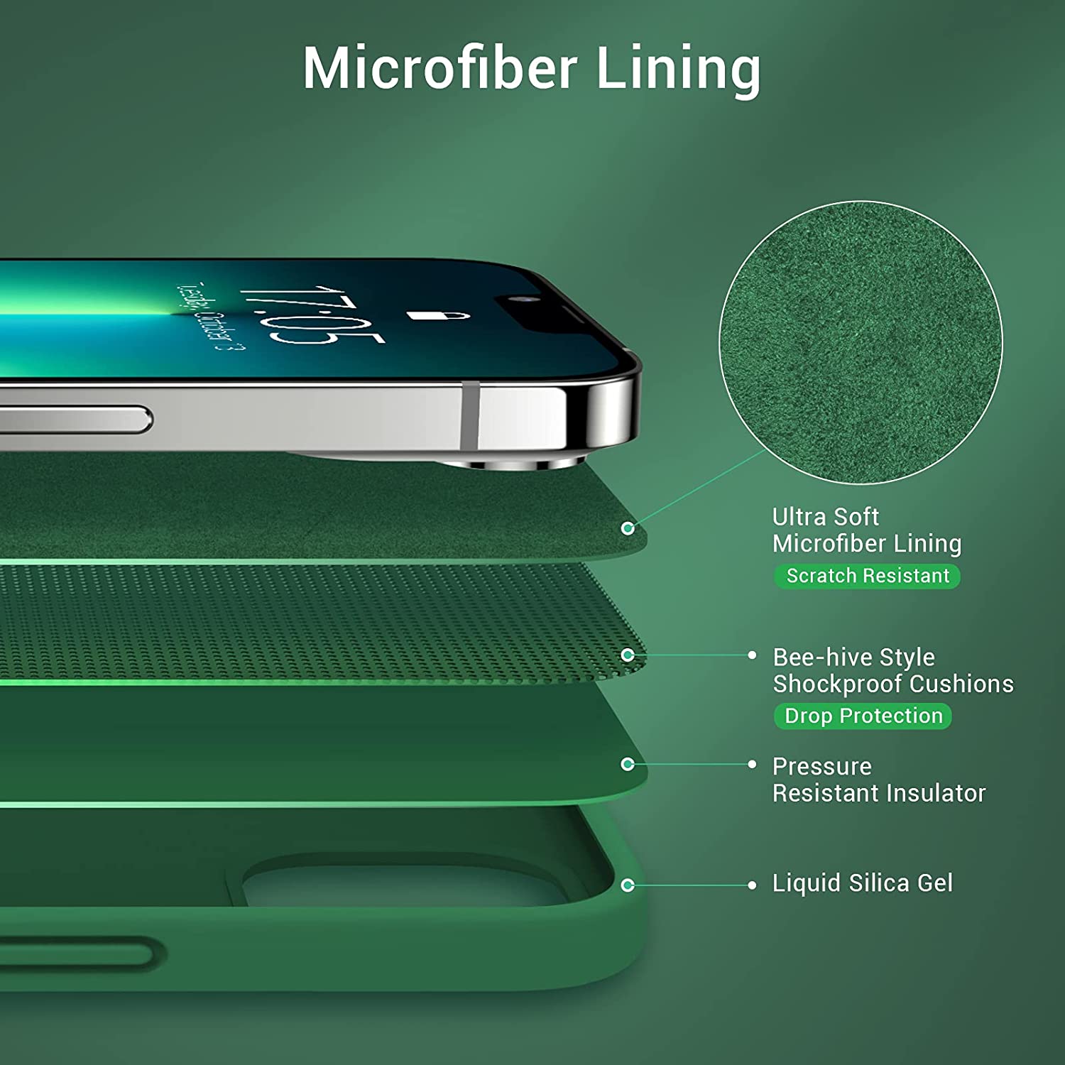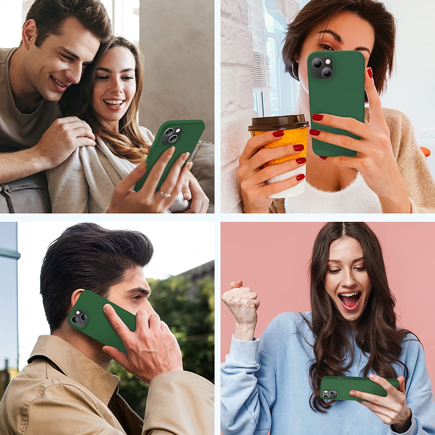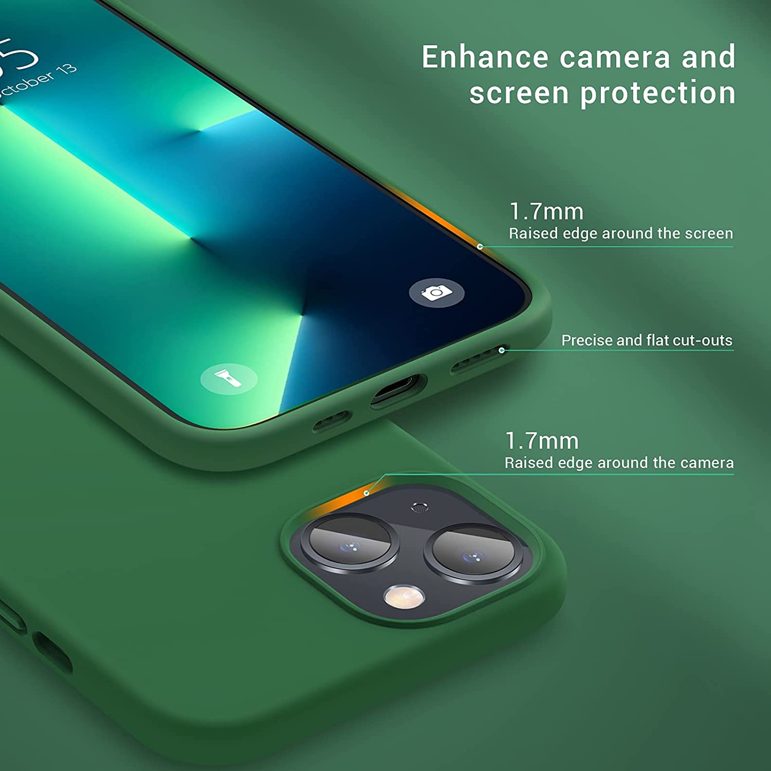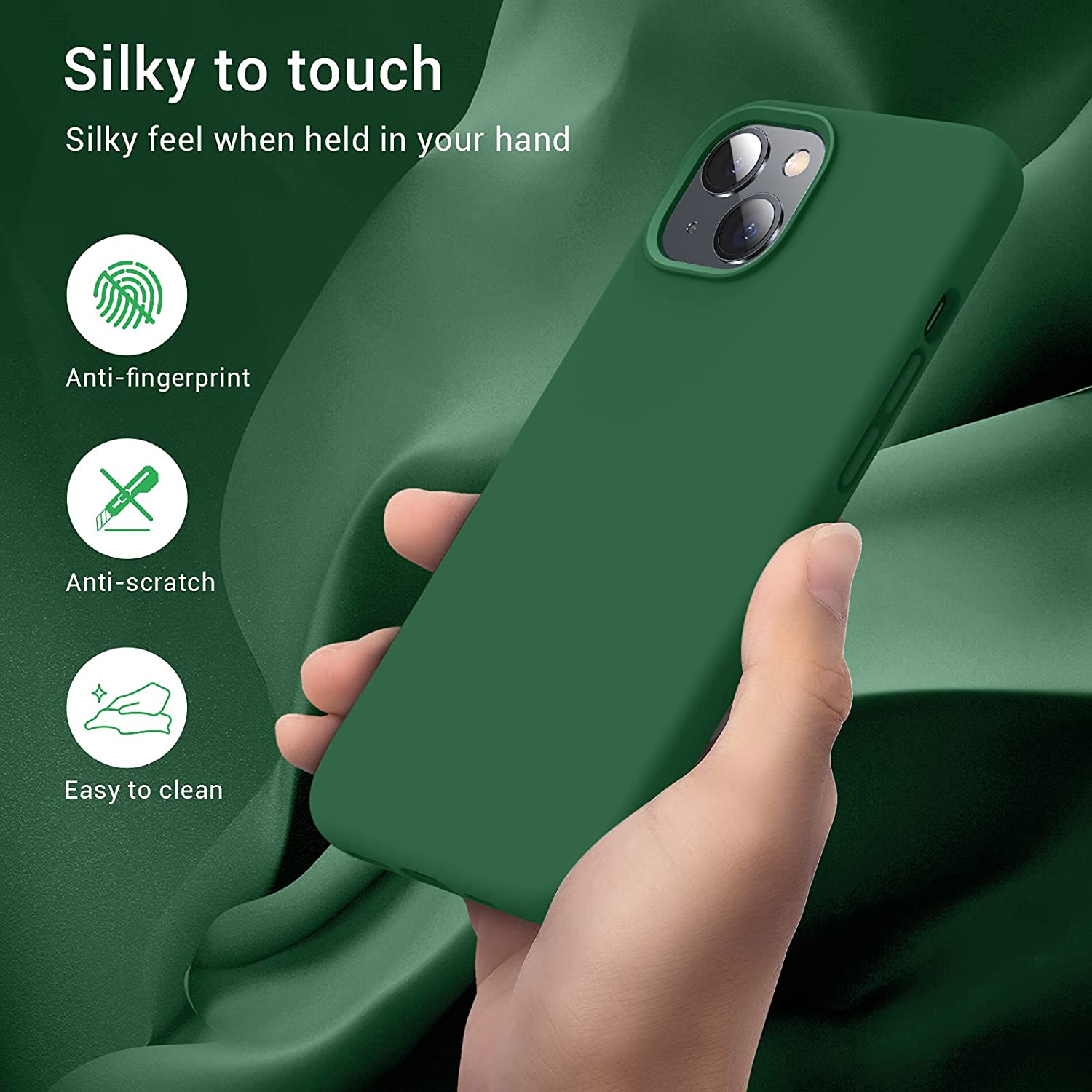 Elando Compatible with iPhone 13 Case & iPhone 14 Case, Liquid Silicone Shockproof Protective Slim Case Shockproof Protective Phone Case with Anti-Scratch Microfiber Lining, 6.1 inch Midnight Green