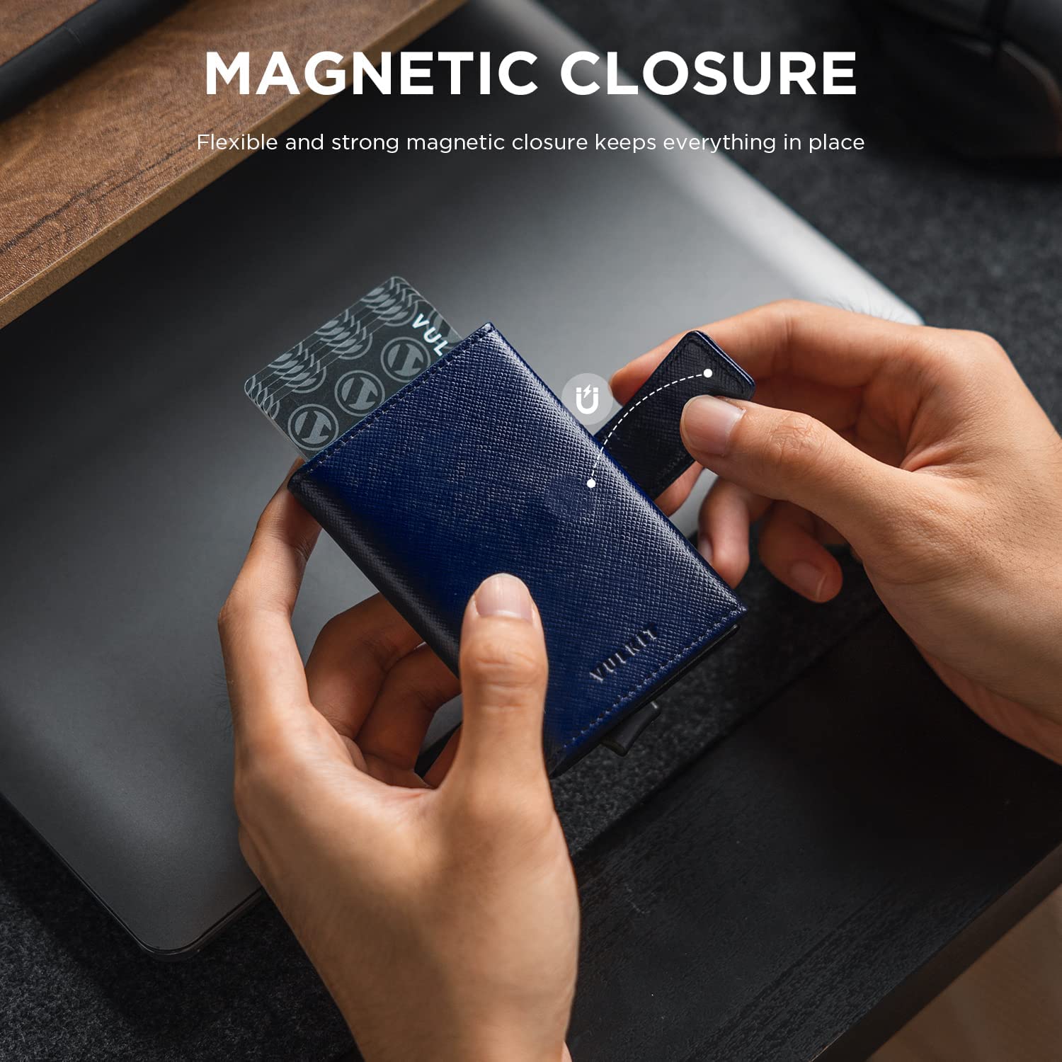 • HOLD 8 CARDS WITH MAGNET CLOSURE: Hold 5 cards in pop up card case. 3 inner slots for your important cards. Strong magnet flapping keeps your cards stay still.
