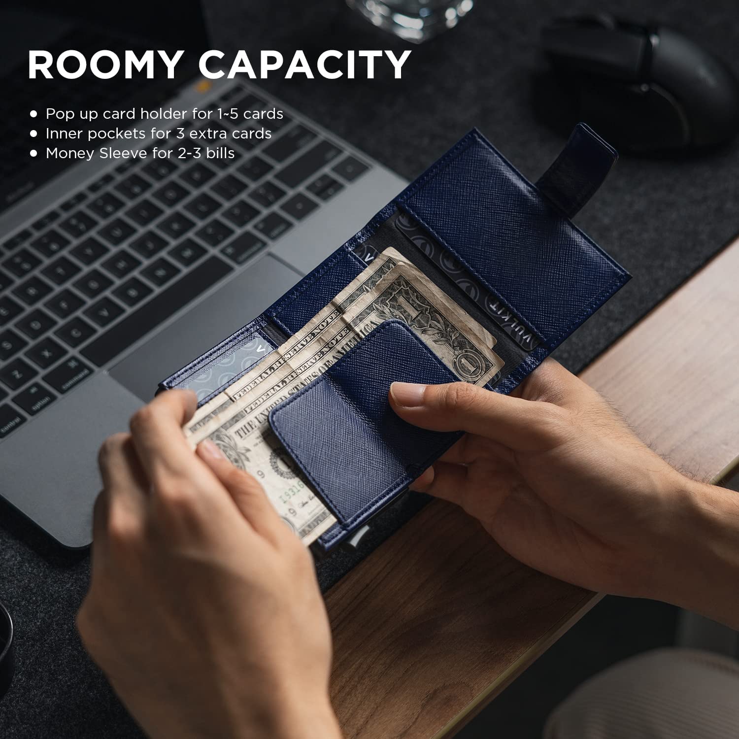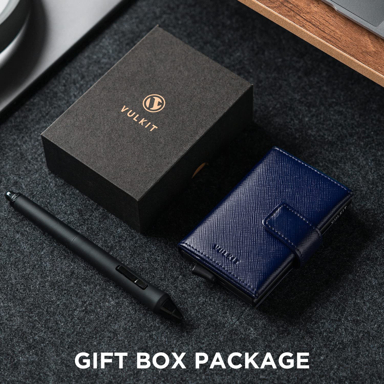 VULKIT Pop Up Wallet, Genuine Leather Automatic Credit Card Holder Wallet RFID Blocking Bifold Pocket Wallet with Banknote Slot for Women Men