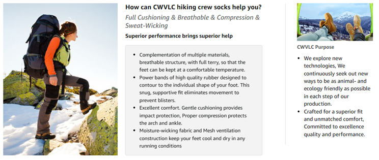 - About Moisture Wicking: New socks do Moisture-Wicking experiment, The superfine fiber on the surface of new socks will affect the effect of Moisture-Wicking, and the fiber will disappear after wearing; There is a limit to the material's ability to Moisture-Wicking, and if the limit is reached, it needs to be dried before the performance can be restored.