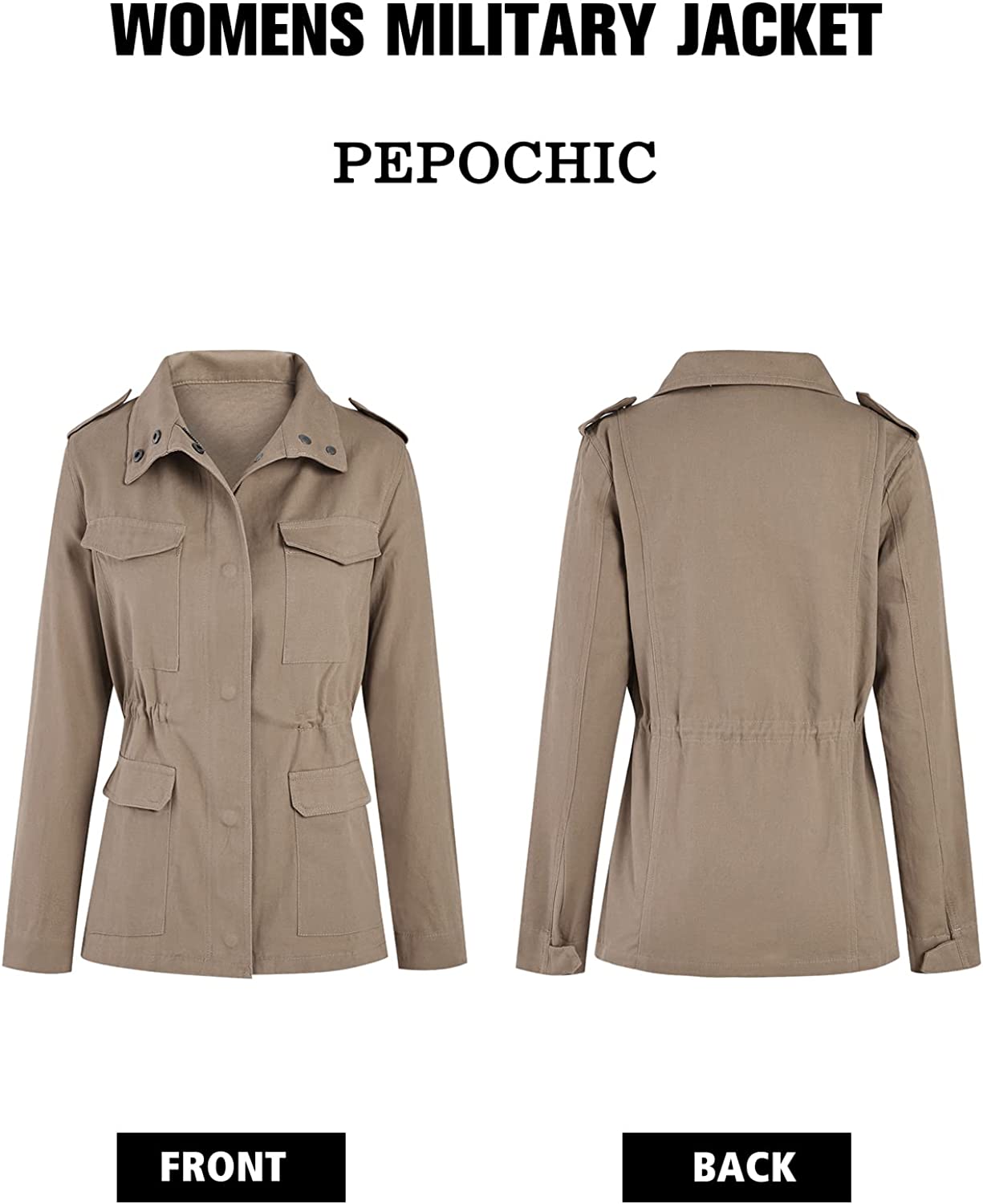 Pepochic Womens Military Jacket Zip Up Snap Buttons Lightweight Utility Anorak Field Safari Coat Outwear…