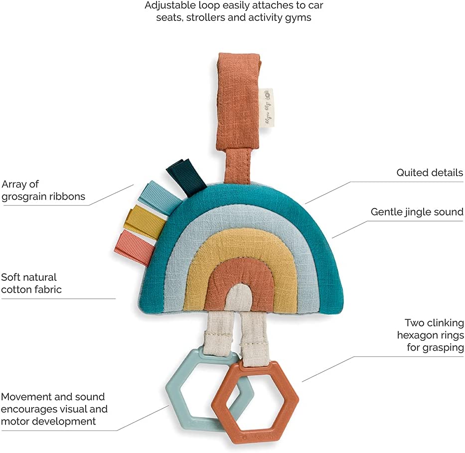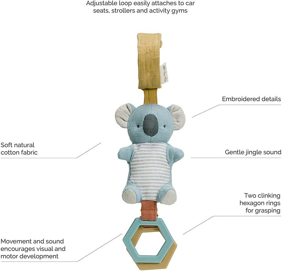 Itzy Ritzy’s Bitzy Bespoke Jingle Travel Toy can easily attach to car seats, strollers and activity gyms, making it perfect for on-the-go use
