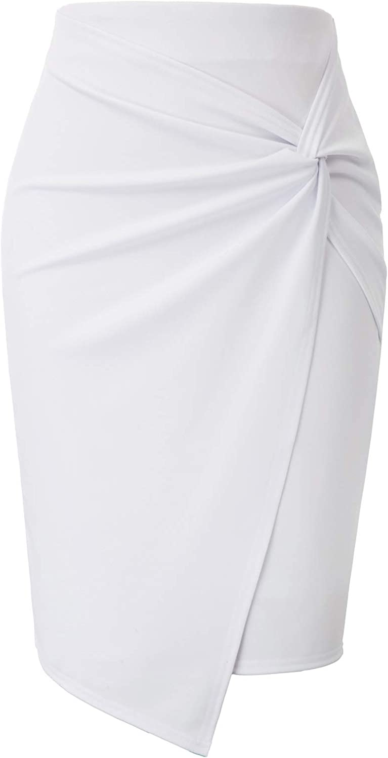 FEATURES: Asymmetrical Wrap Front with concealed zipper in the back.Well elastic pencil skirt