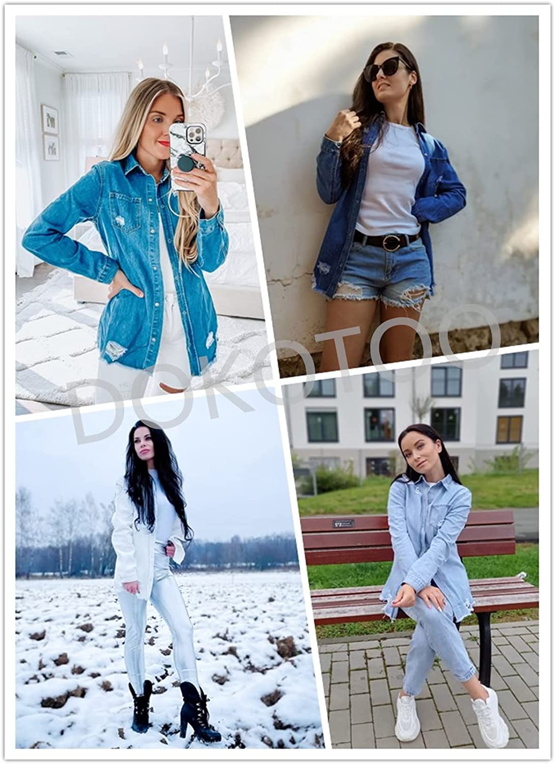 Dokotoo Women's Oversized Denim Jacket Casual Long Boyfriend Distresse Jean Jacket Autumn Spring