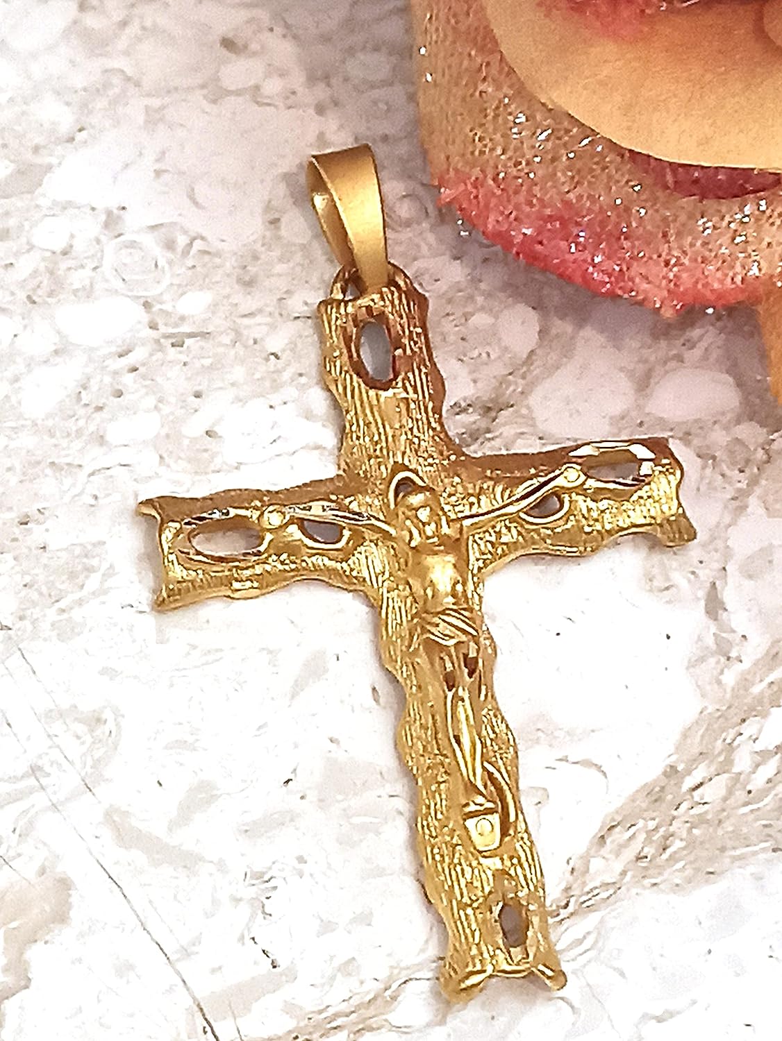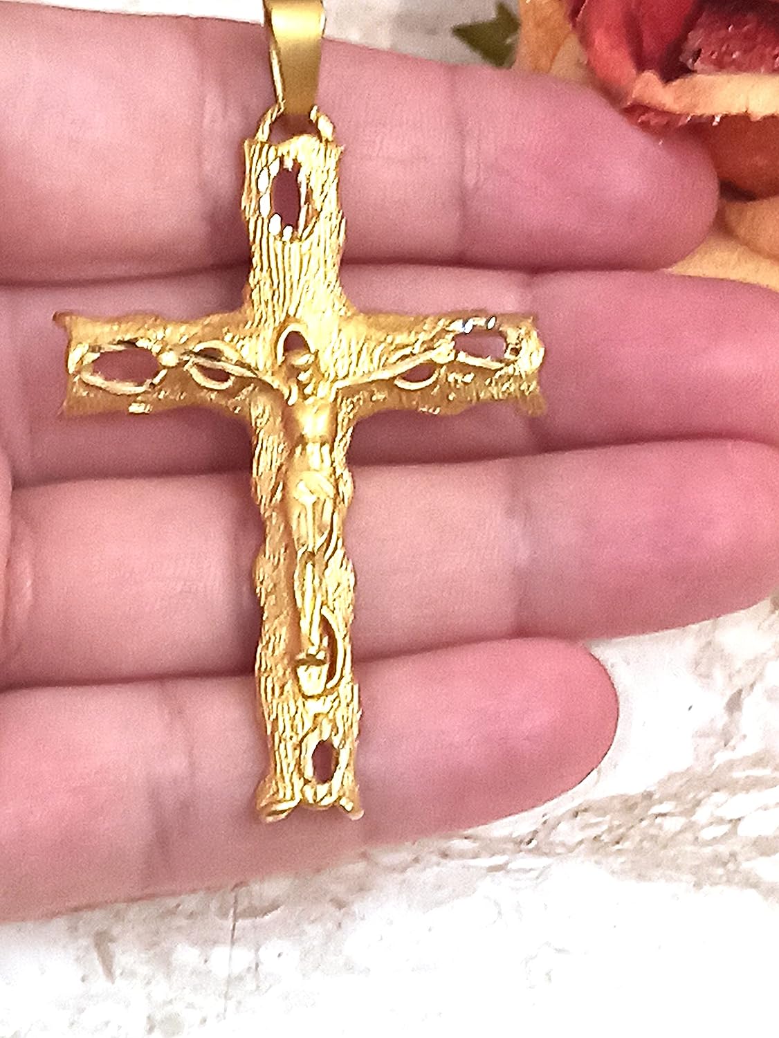 18k SOLID GOLD Cross Necklace for women LARGE Cross pendant Luxury Jewelry Charms HANDMADE Cross Pendant Designer Jewelry for Christian Women Religious UNIQUE gift for women 18kt Gold Jesus Pendant