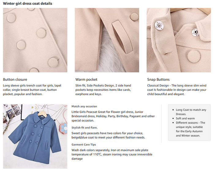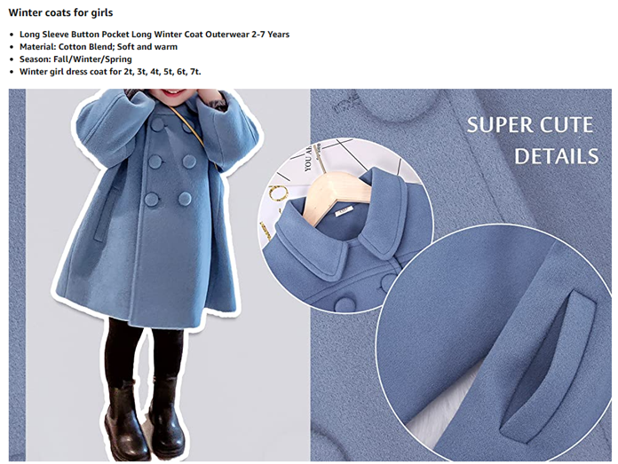 • ??【Lightweight, Easy to Care】Cotton Blend, pea coats for toddler girls. Handwash only. makes your kids warm in autumn, spring and warm winter seasons.
