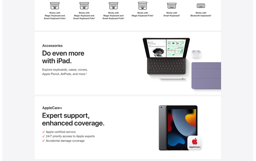 • It adds coverage for up to two incidents of accidental damage from handling, each subject to a service fee of $49 for iPad and $29 for Apple Pencil, plus applicable tax