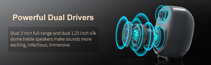 - Premium sound quality: 50W continuous undistorted power, 3-inch full-range unit and 1.25 inch silk dome tweeter unit produce clear treble at higher frequencies and powerful bass at lower frequencies.
