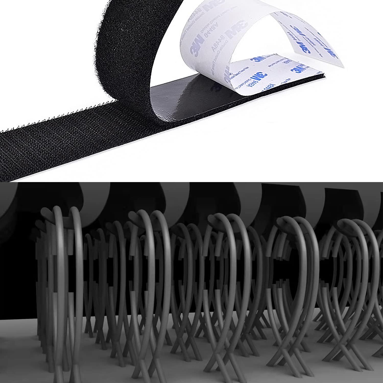 Hook and Loop Tape 2in x 10ft self Adhesive Sticky Back Interlocking Nylon Fabric Fastener Heavy Duty Adhesion Strip Tape reclosable Black