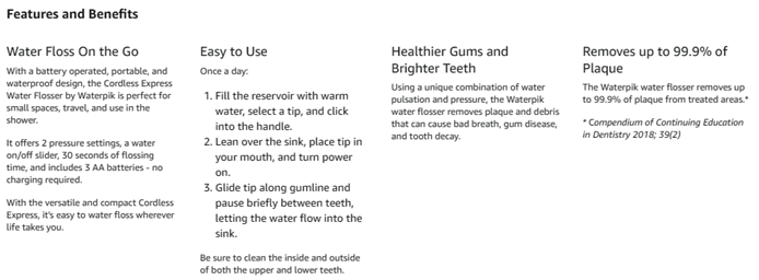 EASY AND EFFECTIVE: The Waterpik Cordless Express water flosser removes up to 99.9 percent of plaque and is up to 50 percent more effective than dental floss for improving gum health. Just fill the reservoir with warm water, place the tip in your mouth, and start flossing.