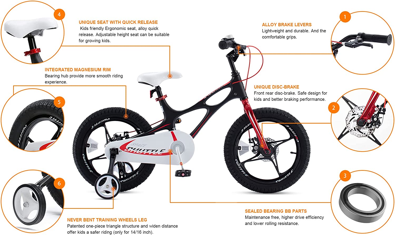 • ? FUTURISTIC LOOK - Every kid dreams about exploring the unknown outer space. Our never-grown-up designers bring this dream to life in this bike. The die-cast Mg Aluminum captures the streamlined shape of a spacecraft, without any solder join. A perfect choice for kids looking to outperform most bikes in the neighborhood.