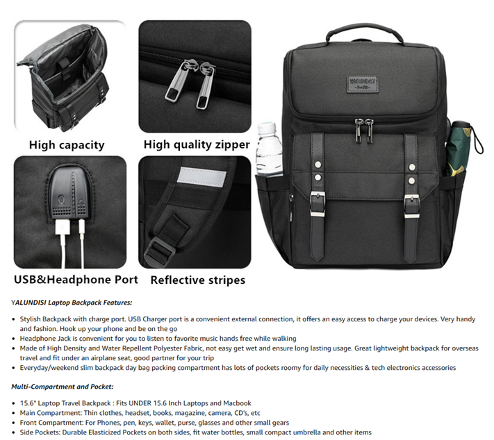 - USB Port Design: With built in USB charger outside and built in charging cable inside,this usb backpack offers you a more convenient way to charge your phone while walking. Please noted that this backpack doesn't power itself, usb charging port only offers an easy access to charge