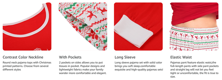 • TOP: Round neck long sleeve pajama tops with Christmas printed patterns.