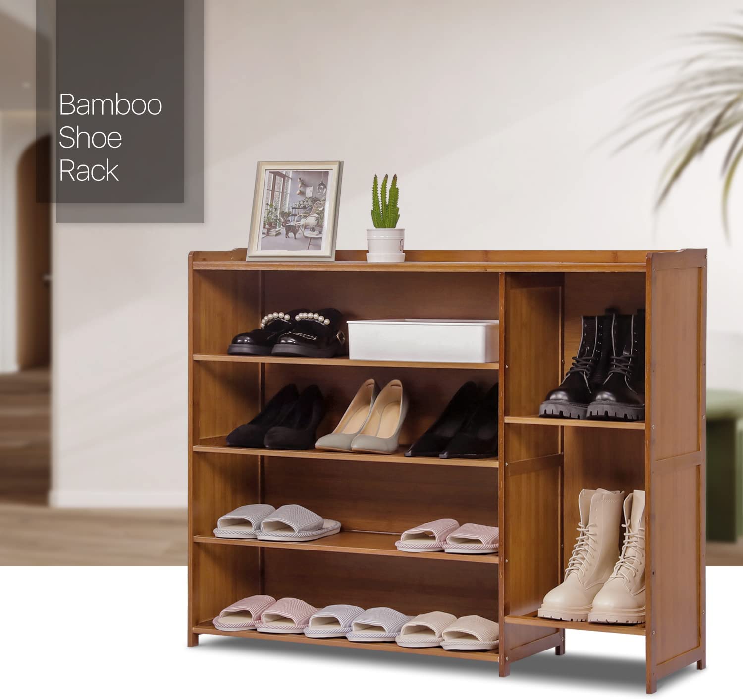 MoNiBloom Shoe Storage Cabinet with Tall Compartment, Bamboo Free Standing 5 Tier Shoe Rack for 16-20 Pairs Bedroom Entryway Hallway Home Office, Brown