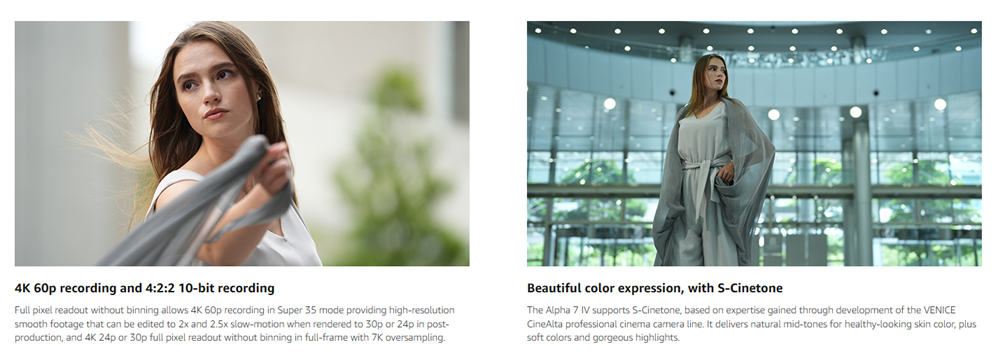 The α7 IV is a truly hybrid camera with both high-resolution 33MP stills and up to 4K 60p video for photo and movie creators, with additional features for live streaming and real-time content sharing.