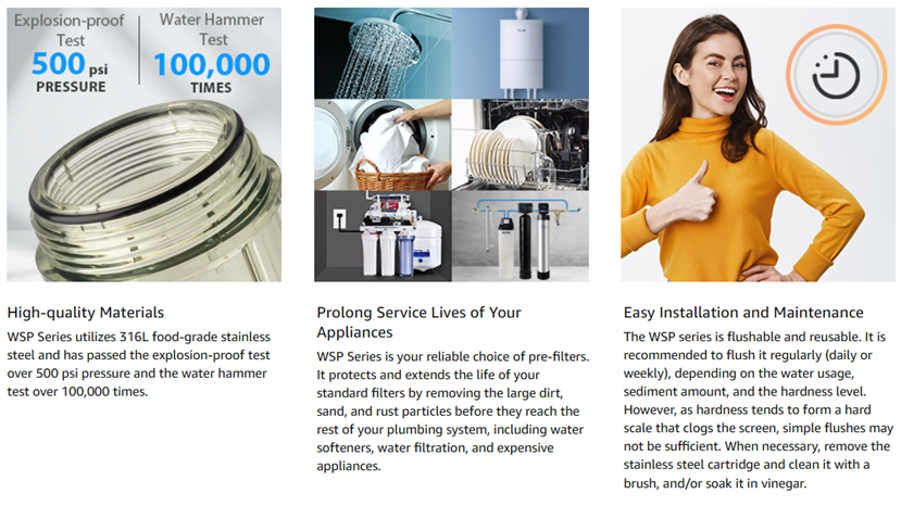 - Indoor friendly. Its for 40- 100F, 20 -100 psi and for indoor use only. Pressure loss or clogged frequently may cause by large particles. If the contaminants in your water are too many or too large, we recommend you choose a larger micron of filter or larger spin down sediment water filtrations like our WSP50B series and WSP50J series.