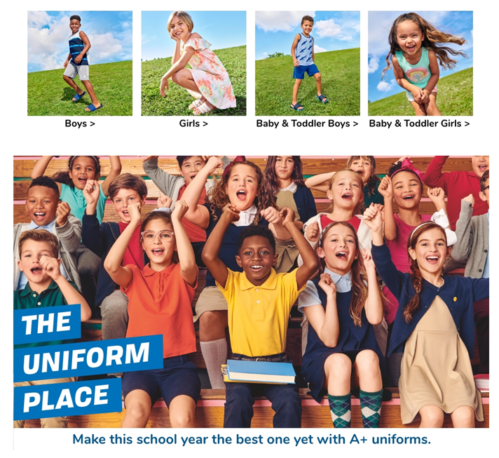• THE CHILDREN'S PLACE — We offer a huge selection of kid's clothing! Shop us for jeans, shorts, leggings, chinos, polo shirts, dresses, pajamas, and accessories.