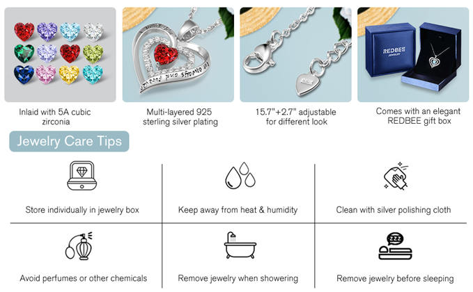 REDBEE sparkling birthstone necklace makes a heartwarming jewelry gifts for wife or gifts for girlfriend. Given as a birthday gift or an anniversary gift, the lettering of “I love you for always and forever” on the double heart necklace will make her feel special and loved.