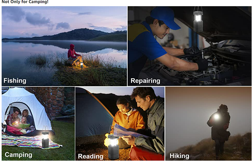 When you are trying to go to the outhouse in the middle of the night, pull your steaks off the grill for dinner at the campsite, clean your fish after an evening of fishing, repair your car when unexpected failure occurs, or just enjoy hiking in the night, this awesome multifunctional solar hand camp lantern is all you will need!