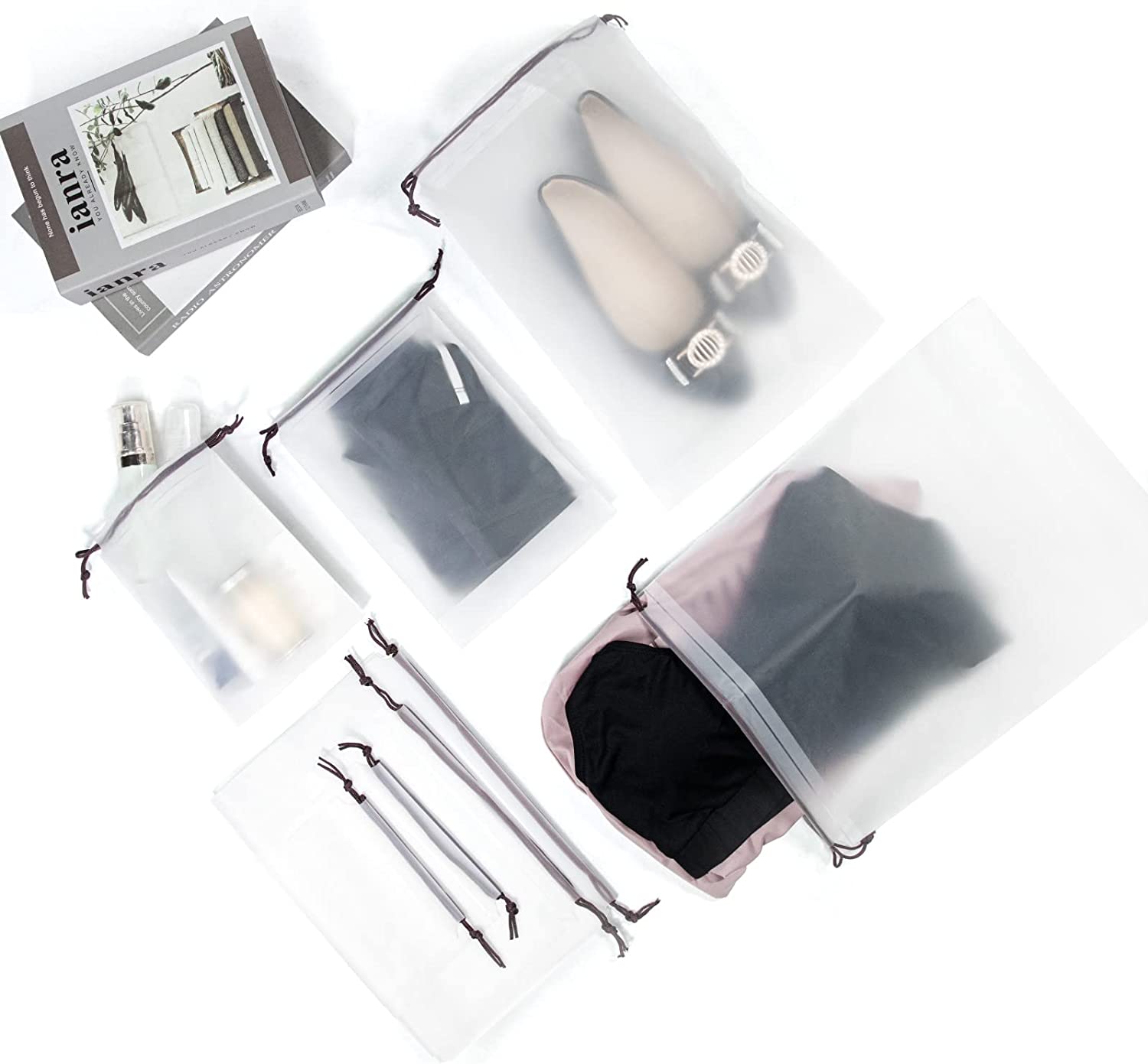 • 8 DRAWSTRING BAGS: Together with the bag comes 8pcs (6*8", 7*10", 10*14", 11*15", 2pcs of each size) drawstring bags, which worth 10 USD, perfect for your underwear, socks, shoes, cosmetics, etc. This can keep your changing clothes well organized during trip.