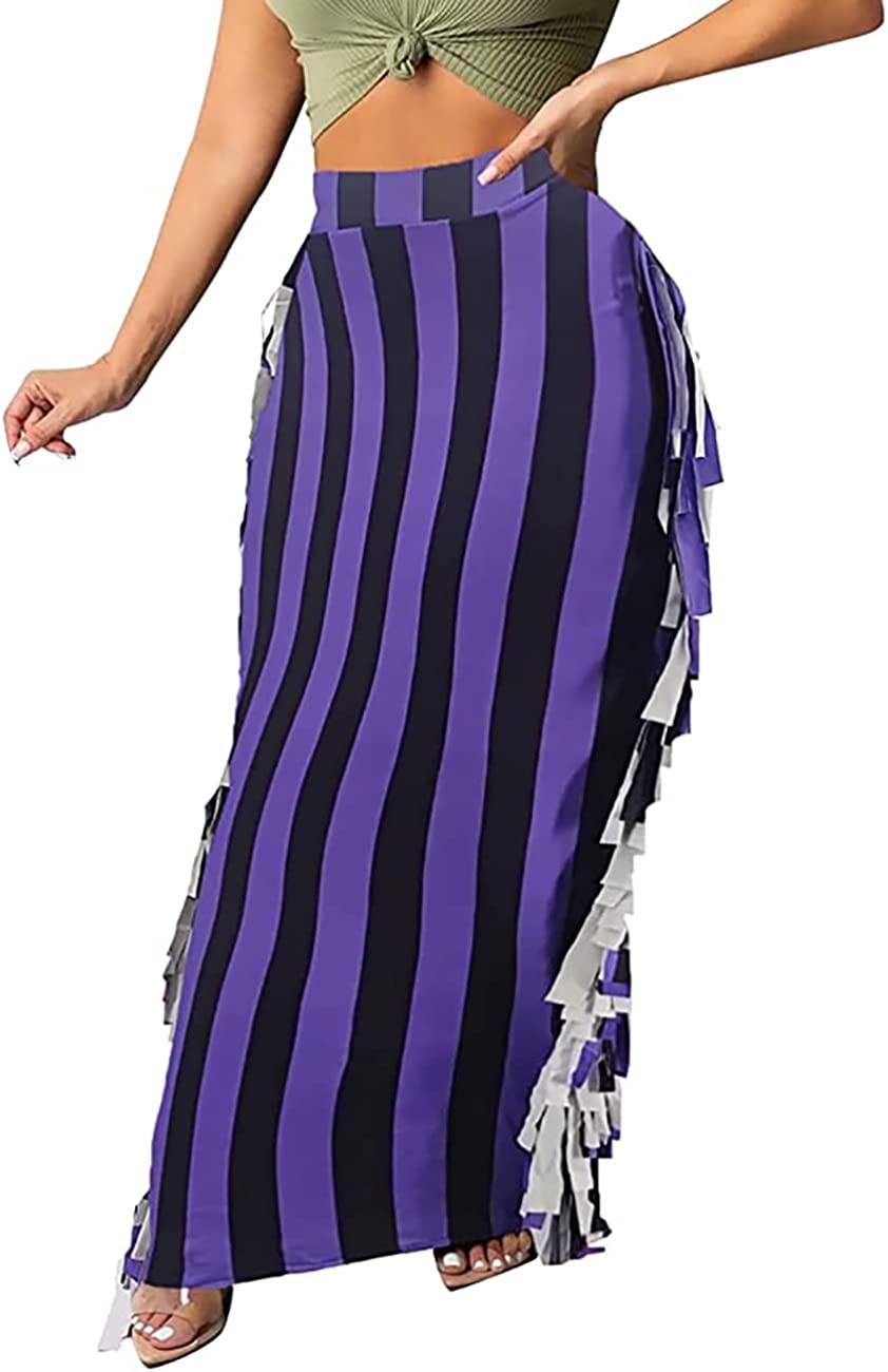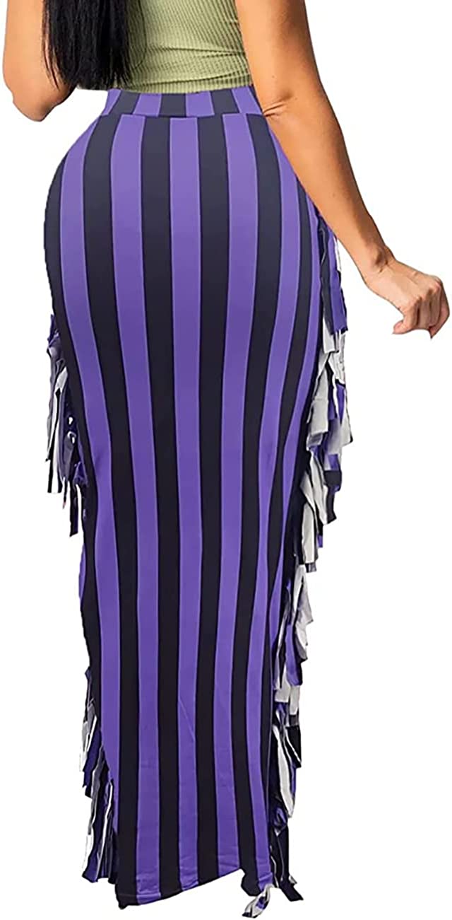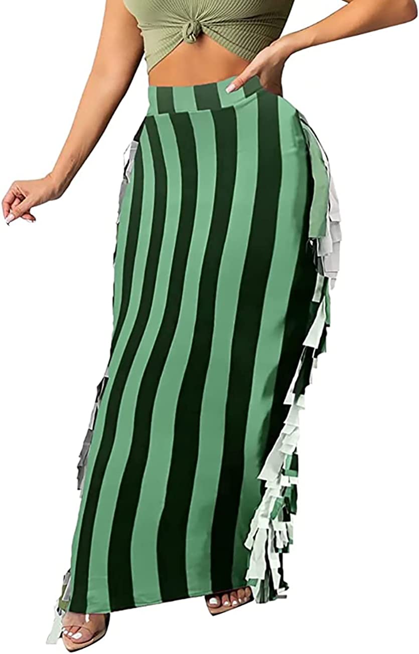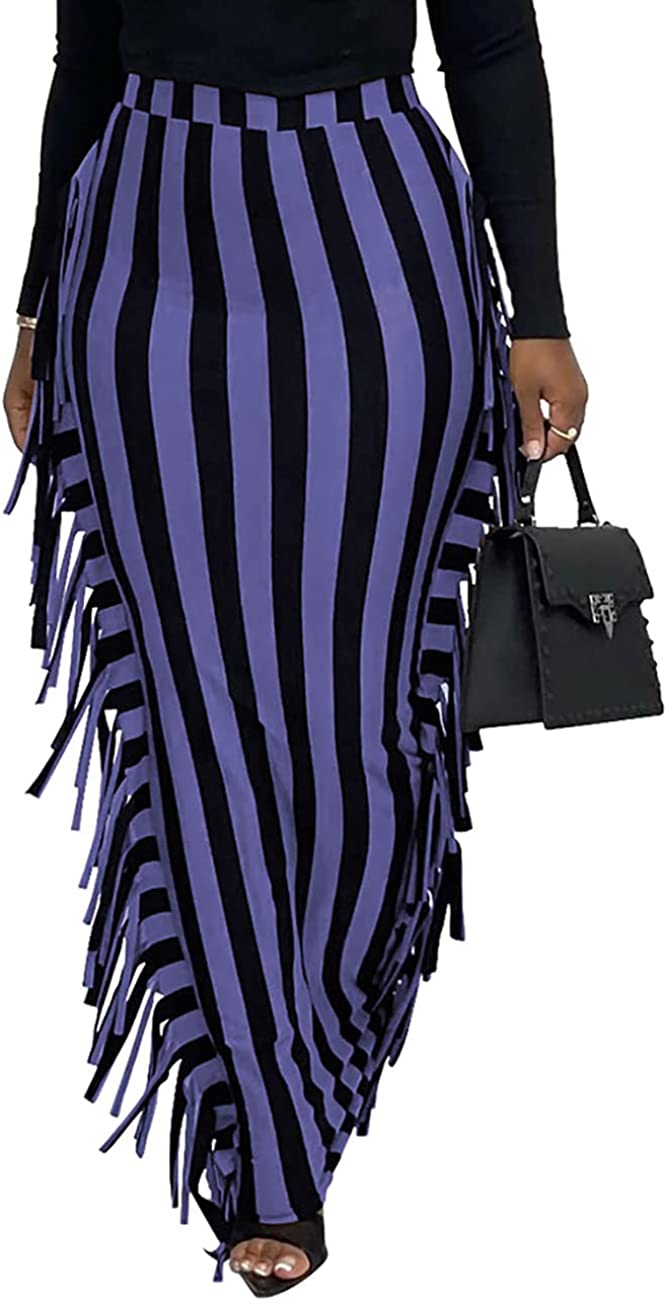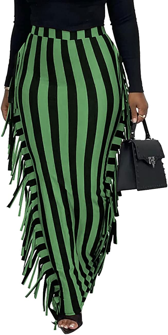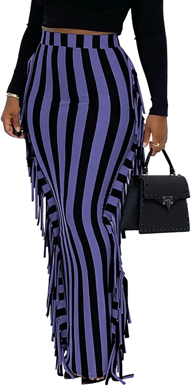 Lrady Women's Elastic Waist Slim Bodycon Side Tassels Long Maxi Pencil Skirts