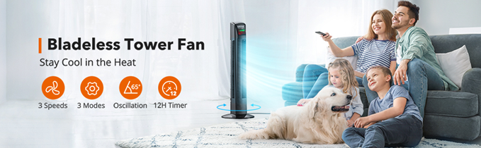 - Child Safe: ETL-certified bladeless tower fan designed with narrow fence to not endanger children; a fused safety plug prevents damage from over-voltage and power surges