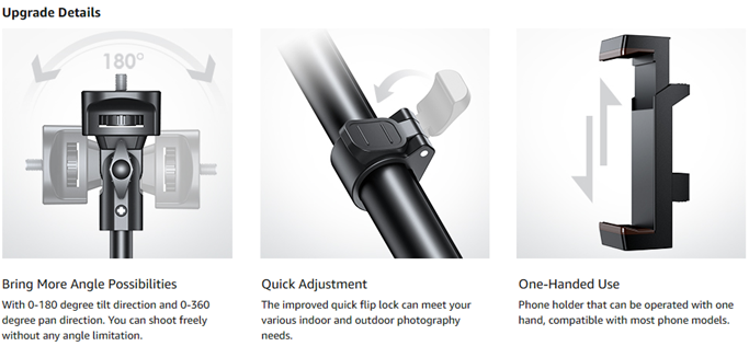 • Base Non-Slip: Upgraded Non-Slip base can help you capture every precious moment even on smooth floors and glass tabletops.