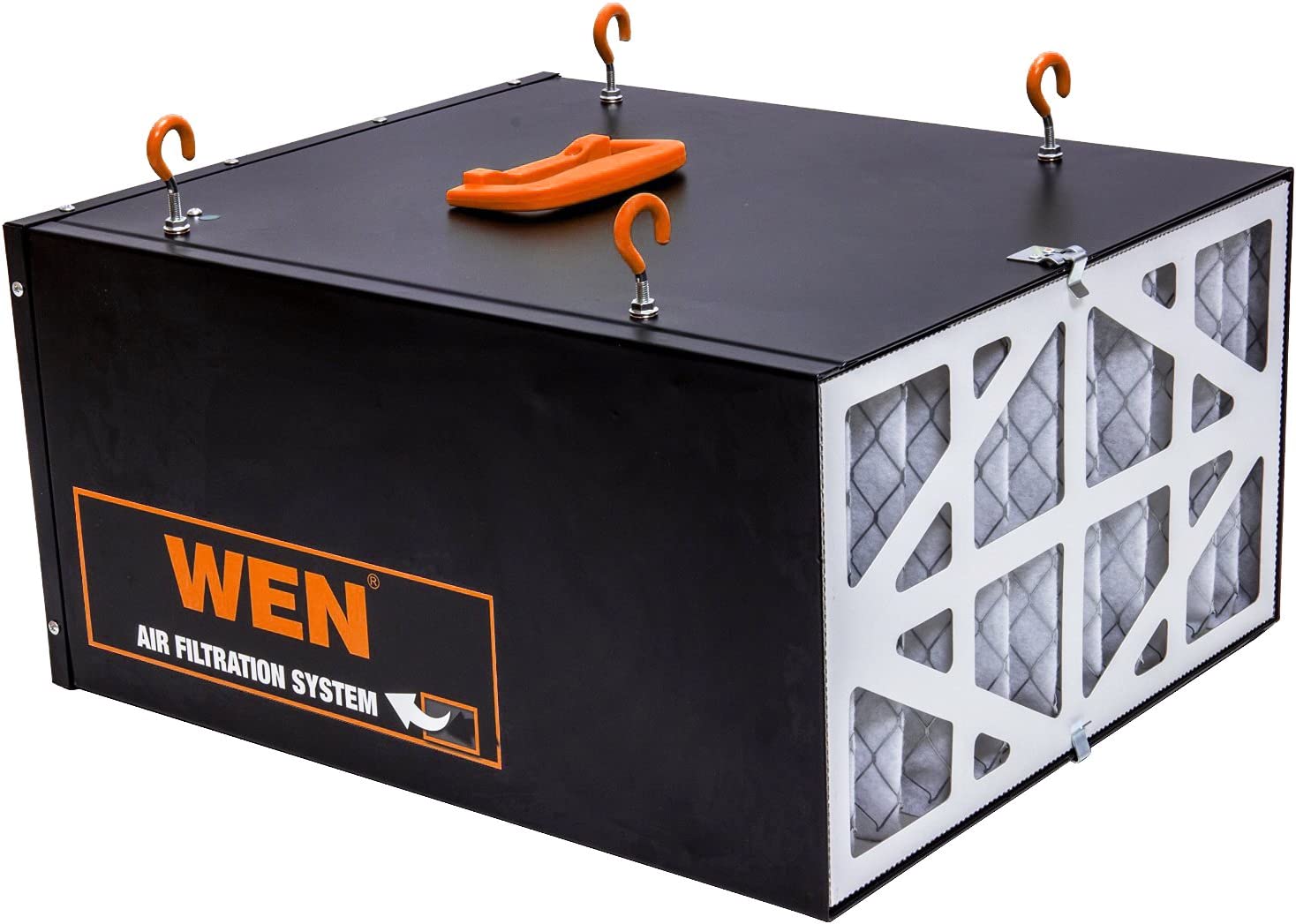 Remember when your workshop was full of clean air? Air-borne dust particulates can dirty up a woodworker's workshop and harm a healthy respiratory system, but with the WEN 3-Speed Remote-Controlled Air Filtration System, you no longer need to worry. This system eradicates these contaminants by catching them in one of the two easily cleanable filters while circulating the air in your work area. The powerful 1/6 HP motor leaves no stone unturned, collecting every contaminant in its path. Quiet system creates 50 to 60 dB of noise and is controllable up to 26 feet away with the included remote. The lightweight design weighs in at a mere 31 pounds. Combine this with the attached carrying handle and eyebolts for easy mobility, mounting and installation. The WEN Air Filtration System collects and releases the air in your workshop after filtering it through both a 5-micron outer filter and a 1-micron inner filter. Easily switch between three speeds of 300, 350 and 400 cfm depending on what the situation calls for. With the time feature, you don't even have to worry about turning off your machine. Simply set the timer and the machine will turn off on its own once the time runs out, allowing you to easily give your workshop a thorough cleanse at the end of a day of woodworking without having to be present. And because this is a WEN Product, your 3-Speed Remote-Controlled Air Filtration System is backed by a two-year warranty, a helpful customer service phone line, and a nationwide network of experienced technicians. Remember when you could breathe easy in your workshop? Remember WEN. Sound Output: 50-60 dB.