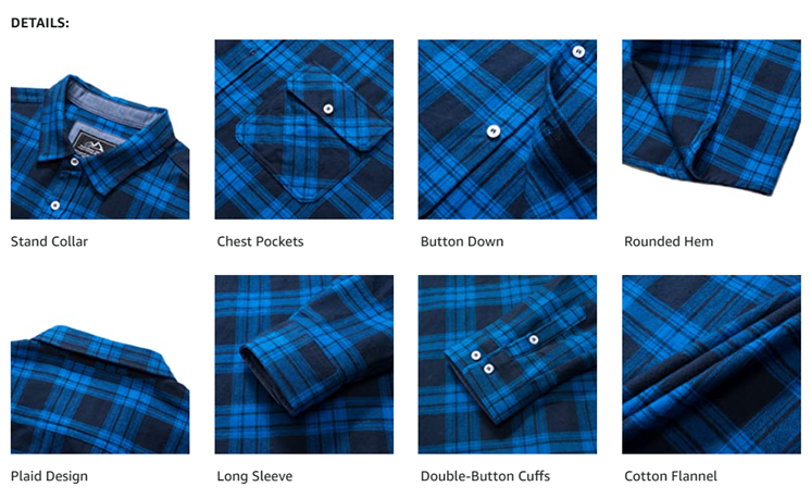 • Feature: 2 chest pockets to enough for storing essentials; Rounded hem; Double-button barrel cuffs; Cotton flannel fabric long-lasting wear.
