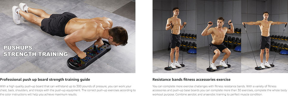 - 【STRENGTH TRAINING MACHINE】Foldable push up board with Fitness accessories, you can learn according to the Exercise guide color coding training methods. Combining with resistance bands set,Guide you through standard strength training, resistance workouts and cardio exercise.
