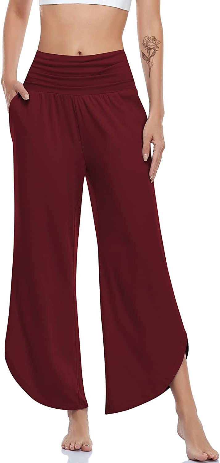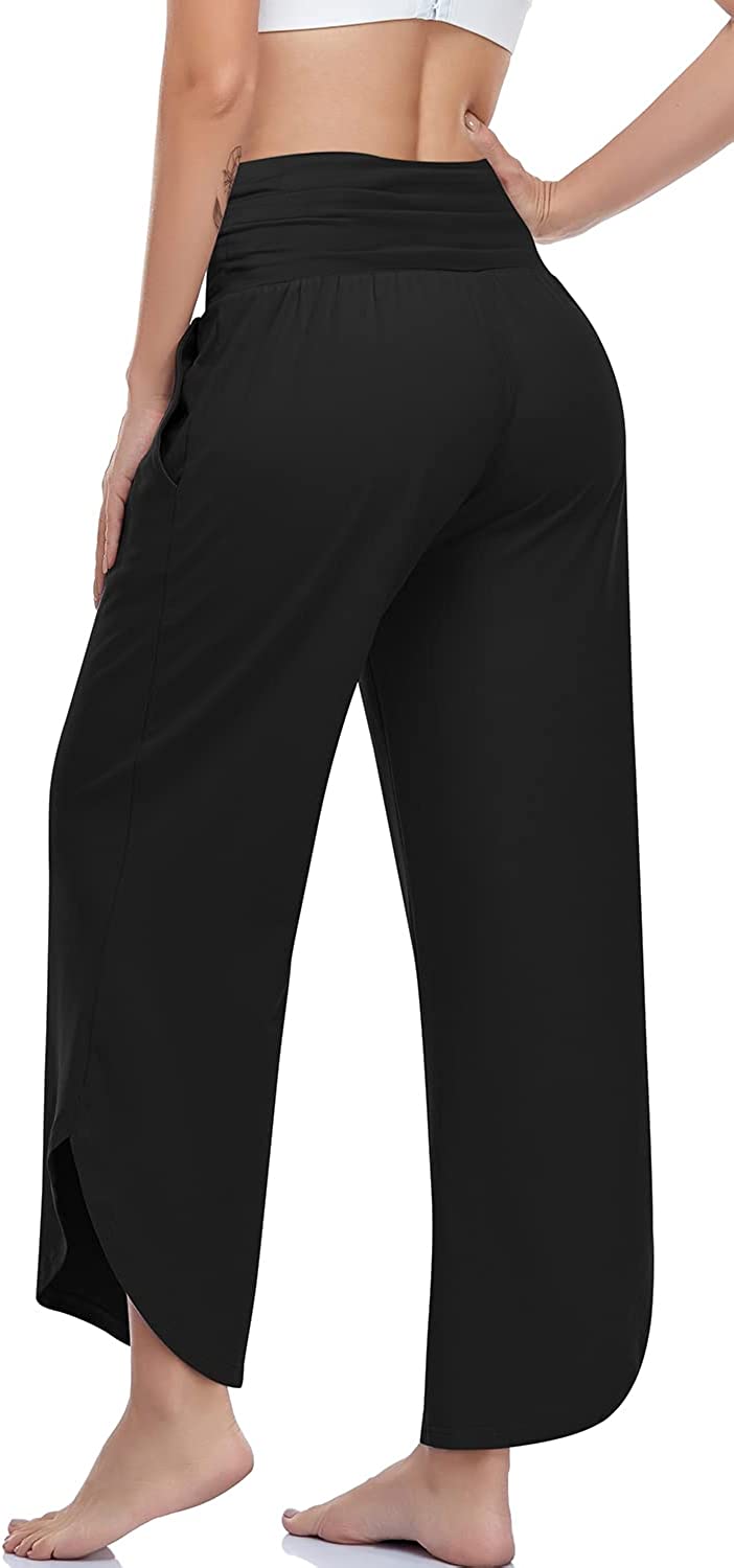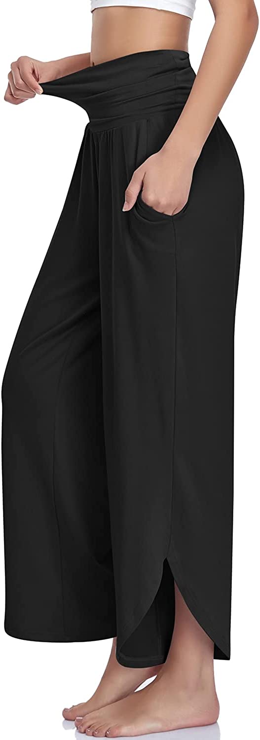 • WIDE LEG PANTS FOR WOMEN: Wide straight leg with curve split hem for delivering fashion yoga design. High elastic waistband, oversized open bottom and slender pants are easy to fit for every body type.