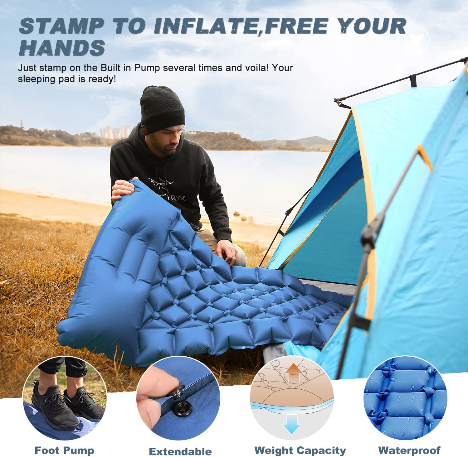 • 【Stamp to Inflate, Only 25s Needed】 No more inflating with your hands, mouth, or a pump. Stamp the spot of the built-in pump with your foot a few times until you fill it up, which takes 25s only! With anti-leakage films in the valves, you shall never worry about air leaking! Also, super quick to deflate - take out the deflation plug.