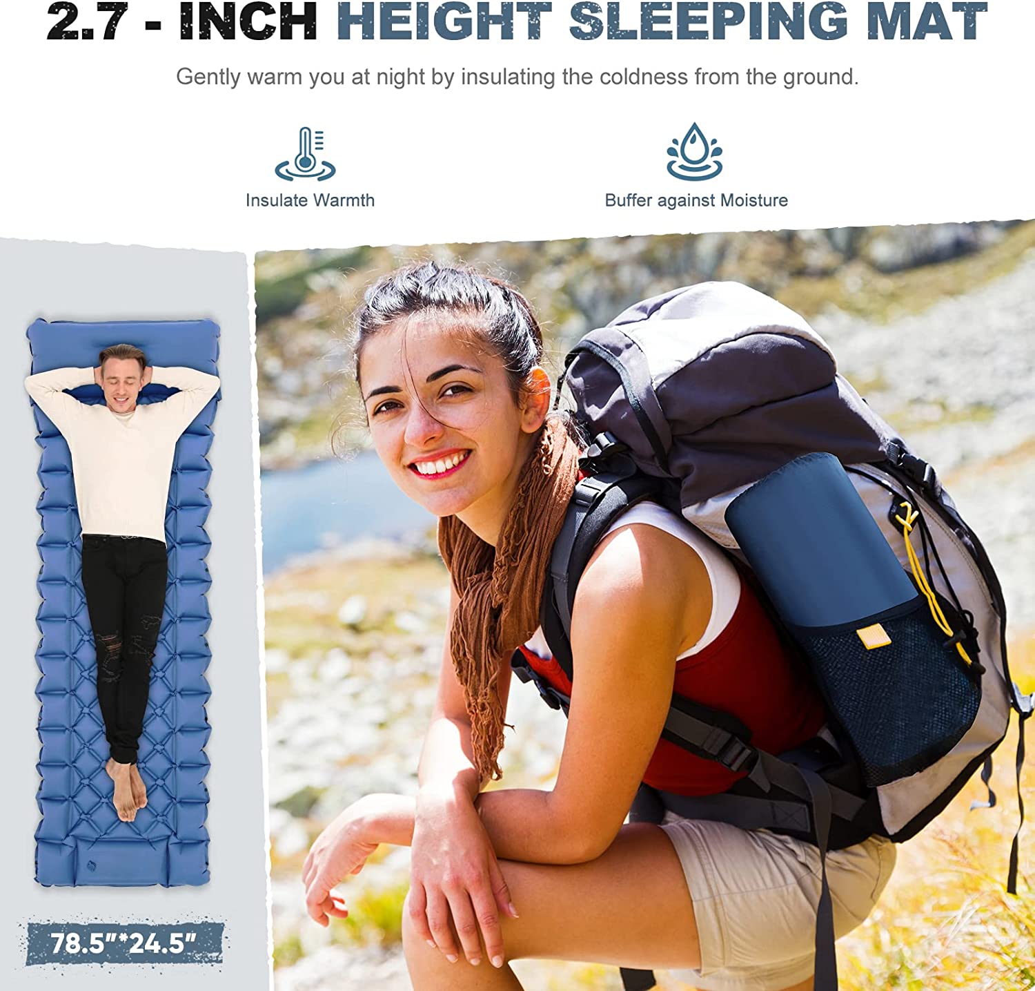 • 【Compact, Lightweight & Portable】 Give you a lighter sleeping mat without compromising any comfort. Just pack it down to the size of a water bottle, taking less space in your backpack. With attached pillow also saves you the trouble of carrying an extra pillow. Perfect for outdoor activities like camping, hiking, backpacking. A camping gear must haves luxury!