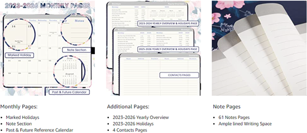 • ? Ideal Organizer- An excellent person will always do well in long-term planning and make everything organized. This 2023-2026 pocket calendar can help you make your monthly planning better and achieve your long-term goal. It is also perfect to use at work, school or home. Just take this ideal organizer and start planning your next 3 years in advance!