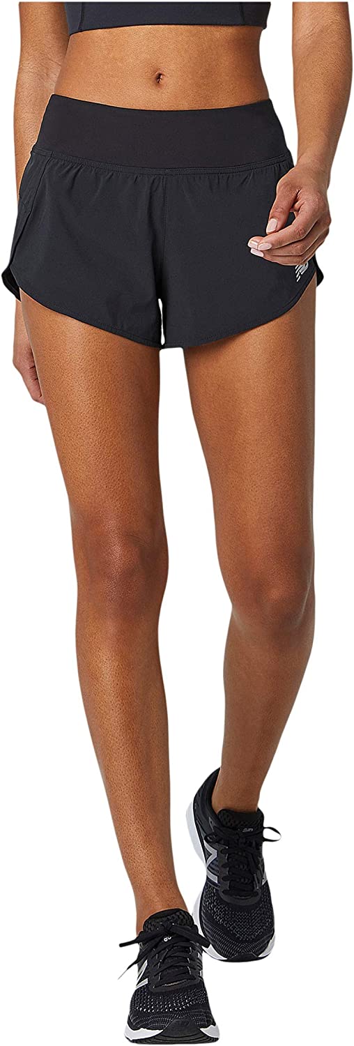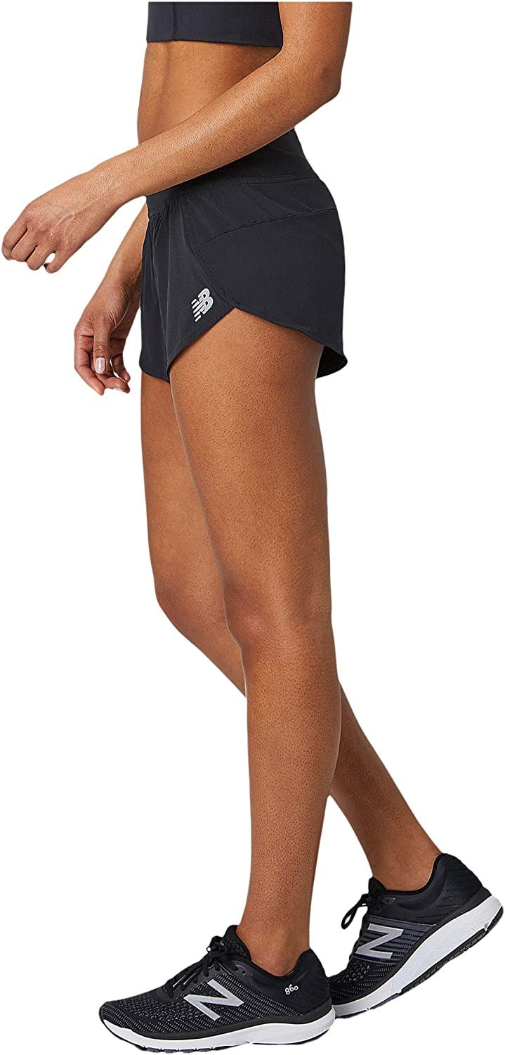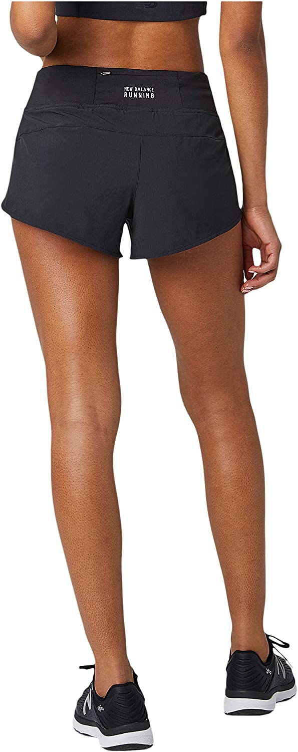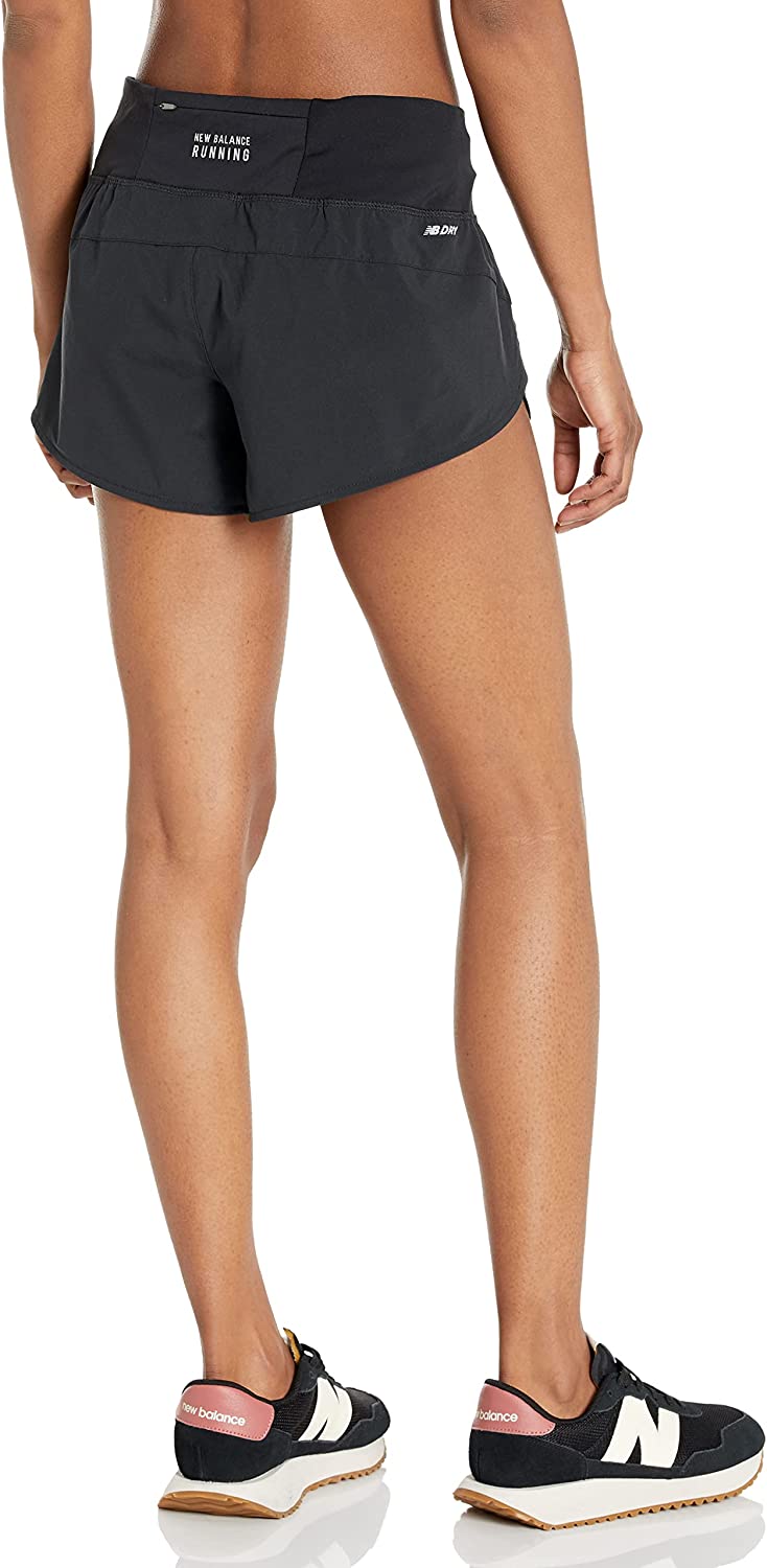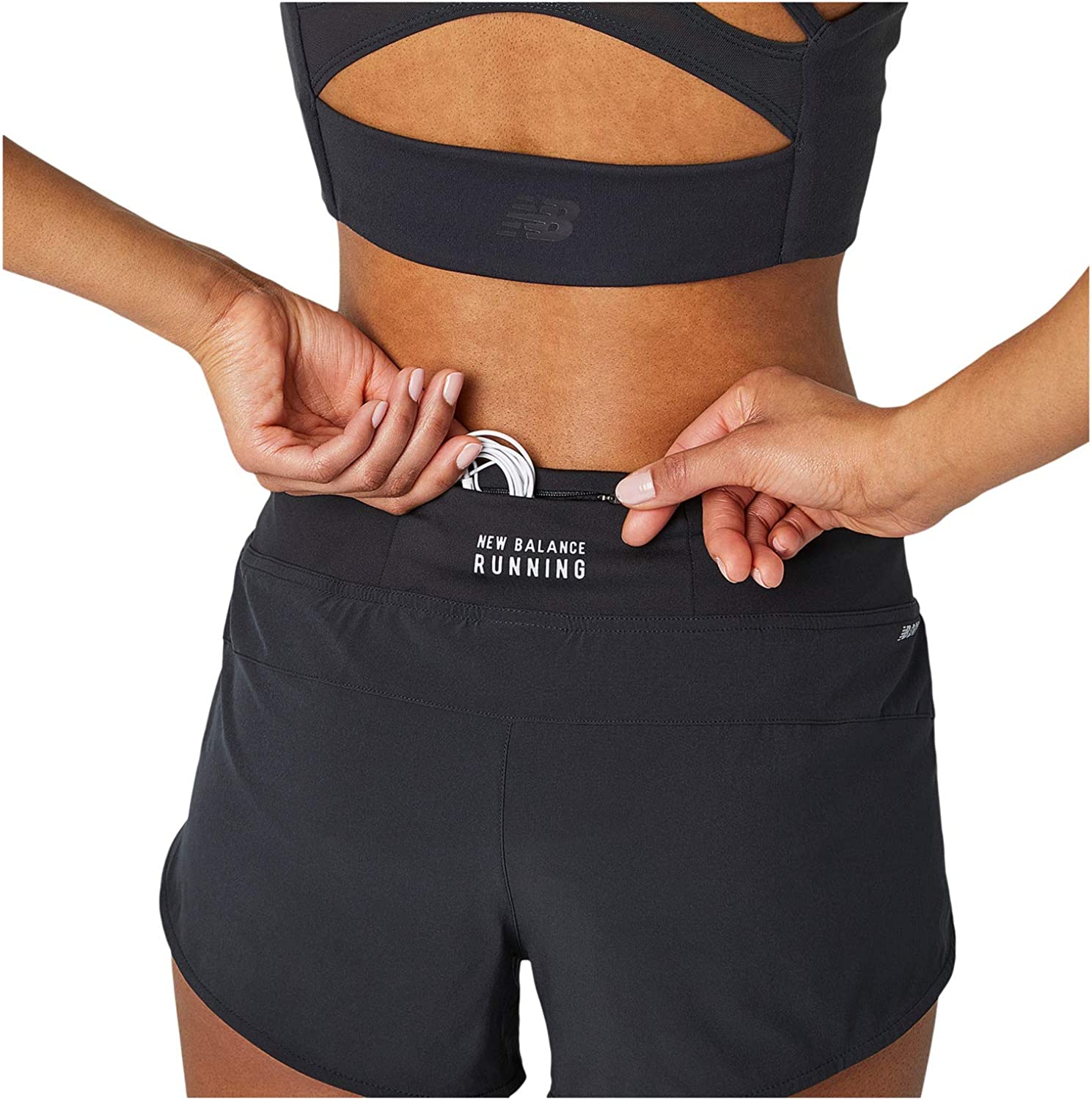 Womens New Balance 3inch Impact Short :: Enjoy marathonquality comfort with the womens 3; Impact Short from New Balance. The semisplit construction and athletic fit help support long strides, while front and back reflectivity helps up your visibility after the sun sets. Plus, New Balances signature NB Dry moisturewicking technology helps keep you cool and comfortable. Added features include a wide jersey waistband with two stealth dropin pockets, an internal comfort brief, and a zippered back pocket for convenient storage.