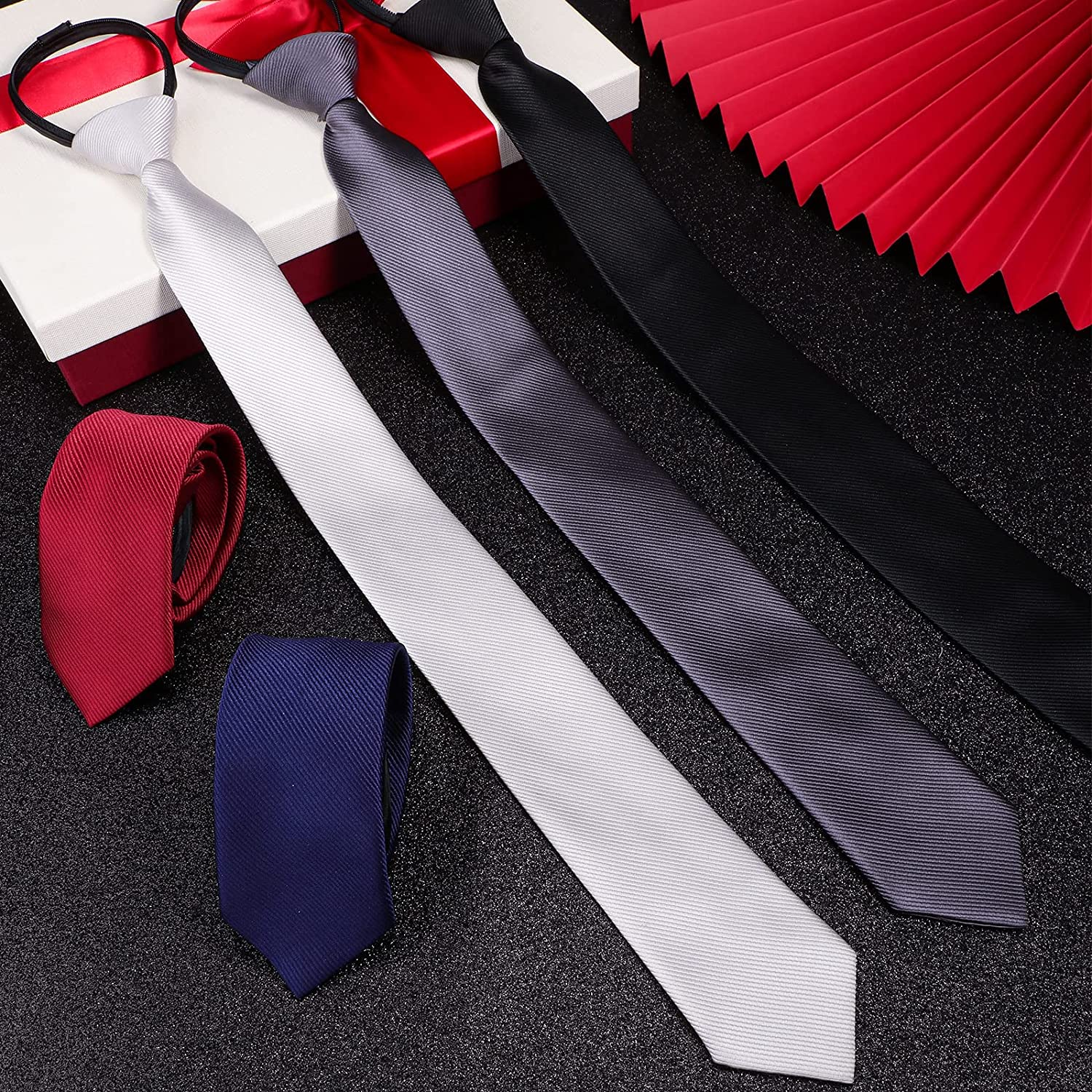 Convenient to Use: these solid color neckties are pre tied ties, which are easy to wear, adjustable zipper, you don't need to spend too much time wearing them, even for tie beginners, these slim ties are pre tied with a neat knot, giving you convenience and efficiency