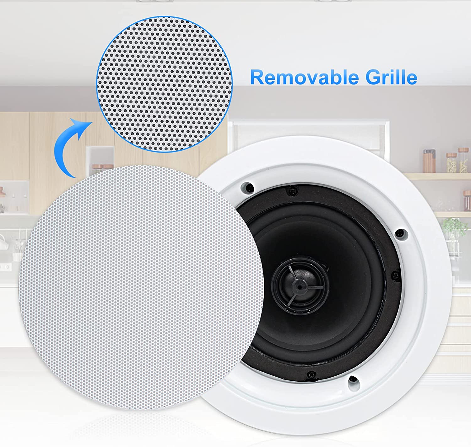 【Easy to Install】The ceiling speakers use in a compact flush mount design for simple easy installation in-wall / in-ceiling , or pre-cut speaker openings, perfect for in home use, office, professional, or custom audio applications on any flat surface