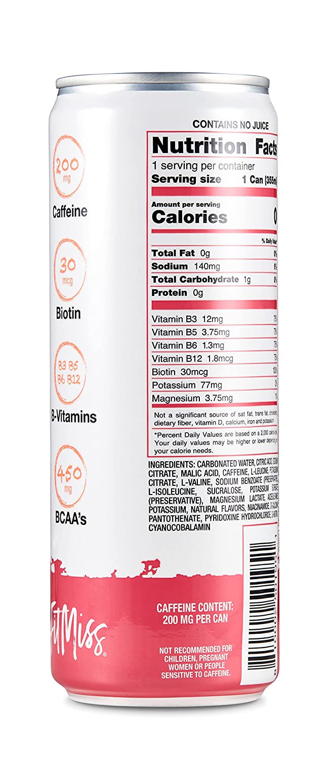 usclePharm FitMiss Energy Drink 12oz (Pack of 12) - Watermelon Waterfall - Sugar Free Calories Free - Perfectly Carbonated with No Artificial Colors or Dyes