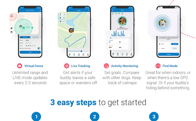 • LIVE TRACKING & LOCATION HISTORY - Follow your furry friend's every step in real-time on your phone. See where your dog has been and what they've been up to with this dog GPS tracker.
