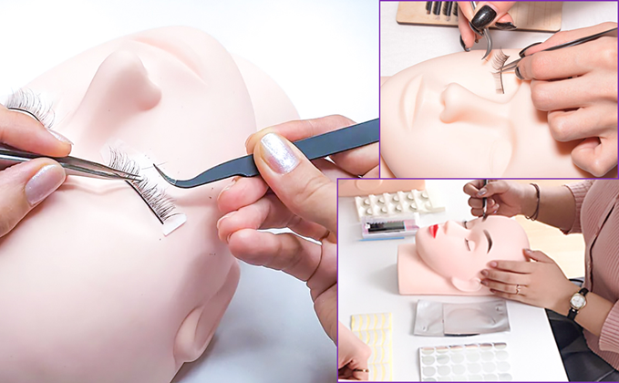 Step 3:Attach false eyelashes to the eyelid of the mannequin head