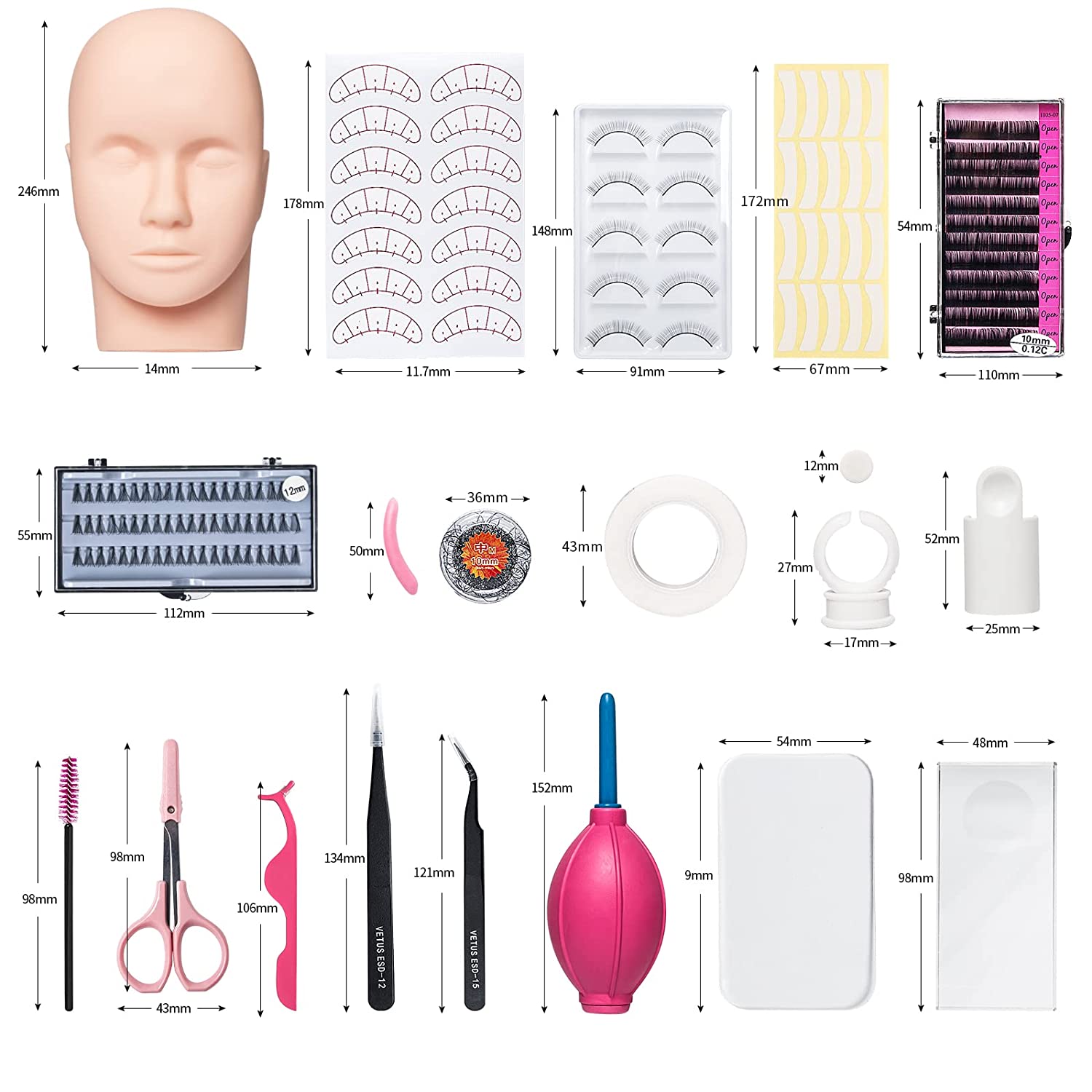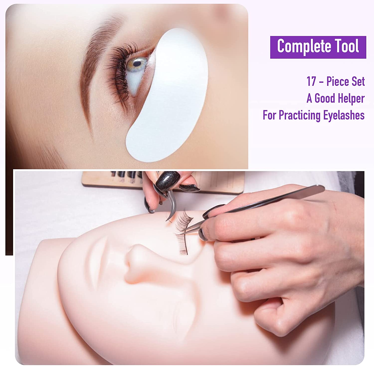 • Perfect Kit-- Set of 17pcs eyelash extension practice kit, a great gift for your daughter, beauty student, masseur and female to practice makeup or facial massage.(No Contain Glue)