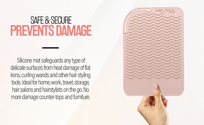 - SURFACE PROTECTION - Silicone mat safeguards any type of delicate surfaces from heat damage of flat irons, curling wands and other hair styling tools. Ideal for home, work, travel, storage, hair salons and hairstylists on the go. No more damage counter-tops and furniture.