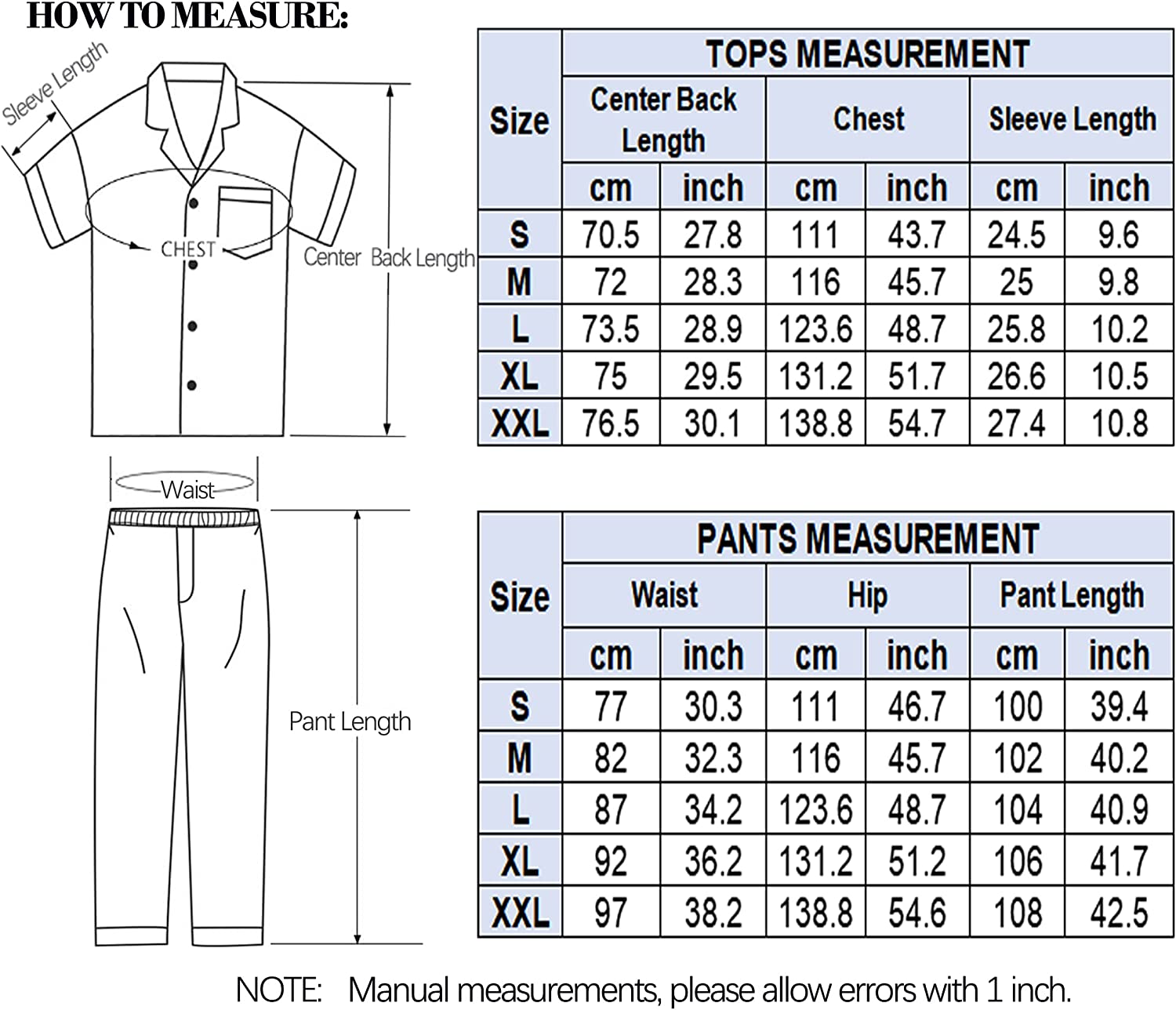 • SIZE AND CARE: Men silk pjs set can be machine or hand washed. Hang to dry. Do not iron or bleach at high temperatures. Our size is standard US size, please refer to the size chart before ordering