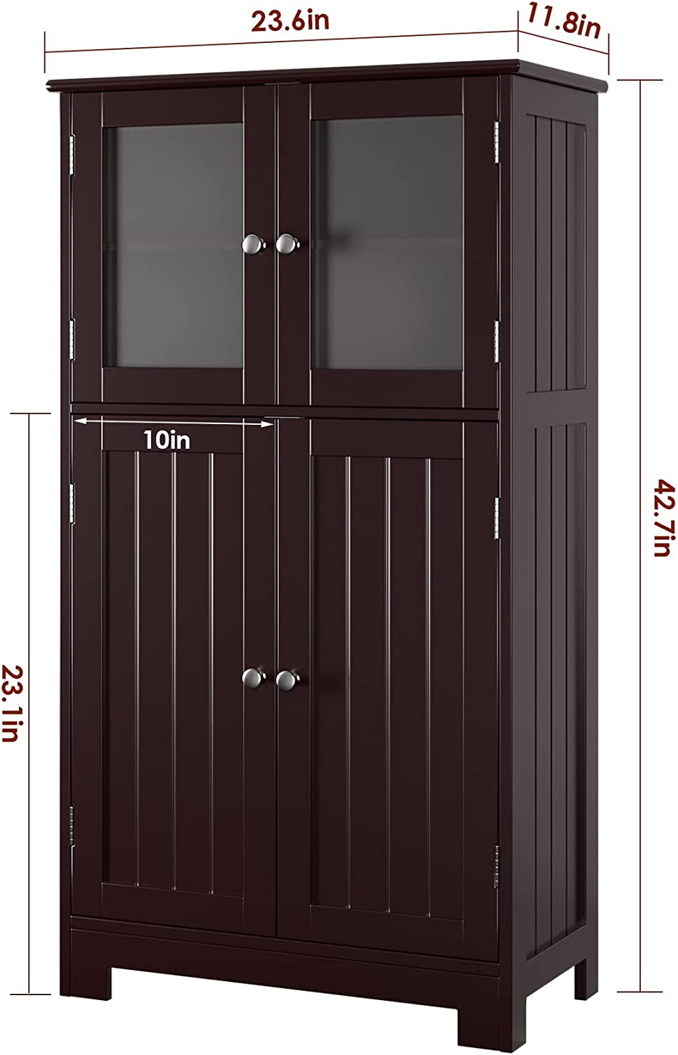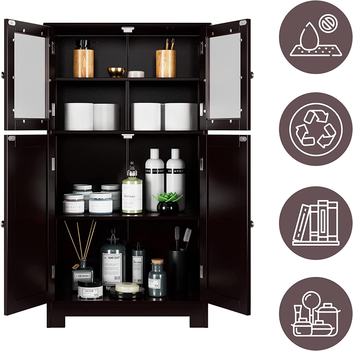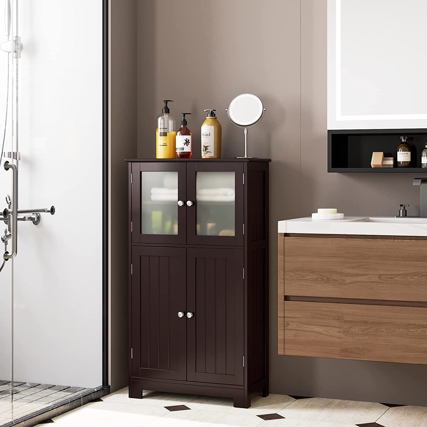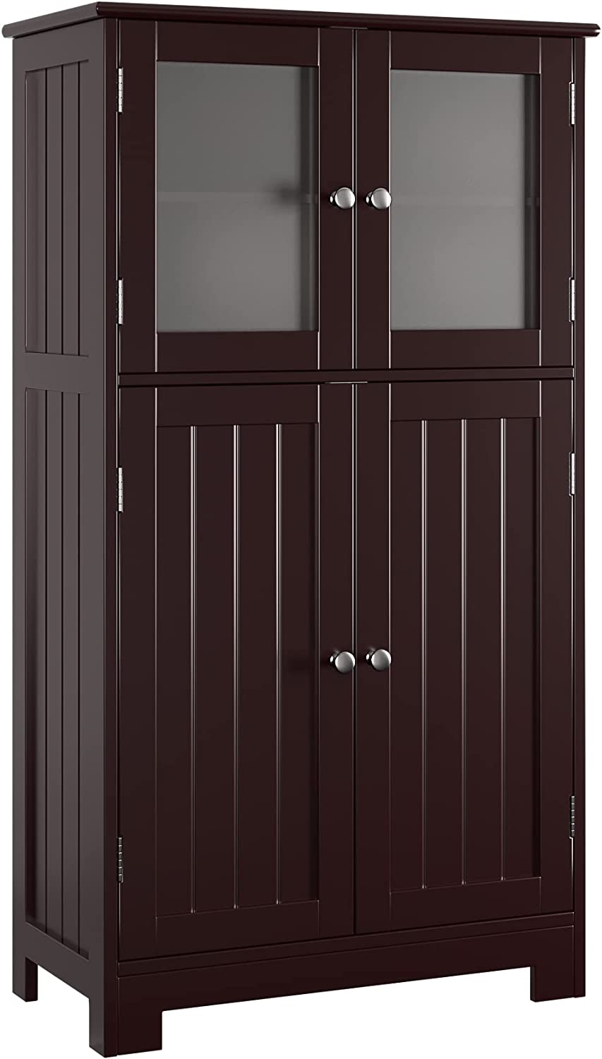 HORSTORS Bathroom Cabinet, Linen Storage Cabinet with Doors, Wooden Floor Cabinet with Adjustable Shelves for Bathroom, Living Room, Office, Dark Brown