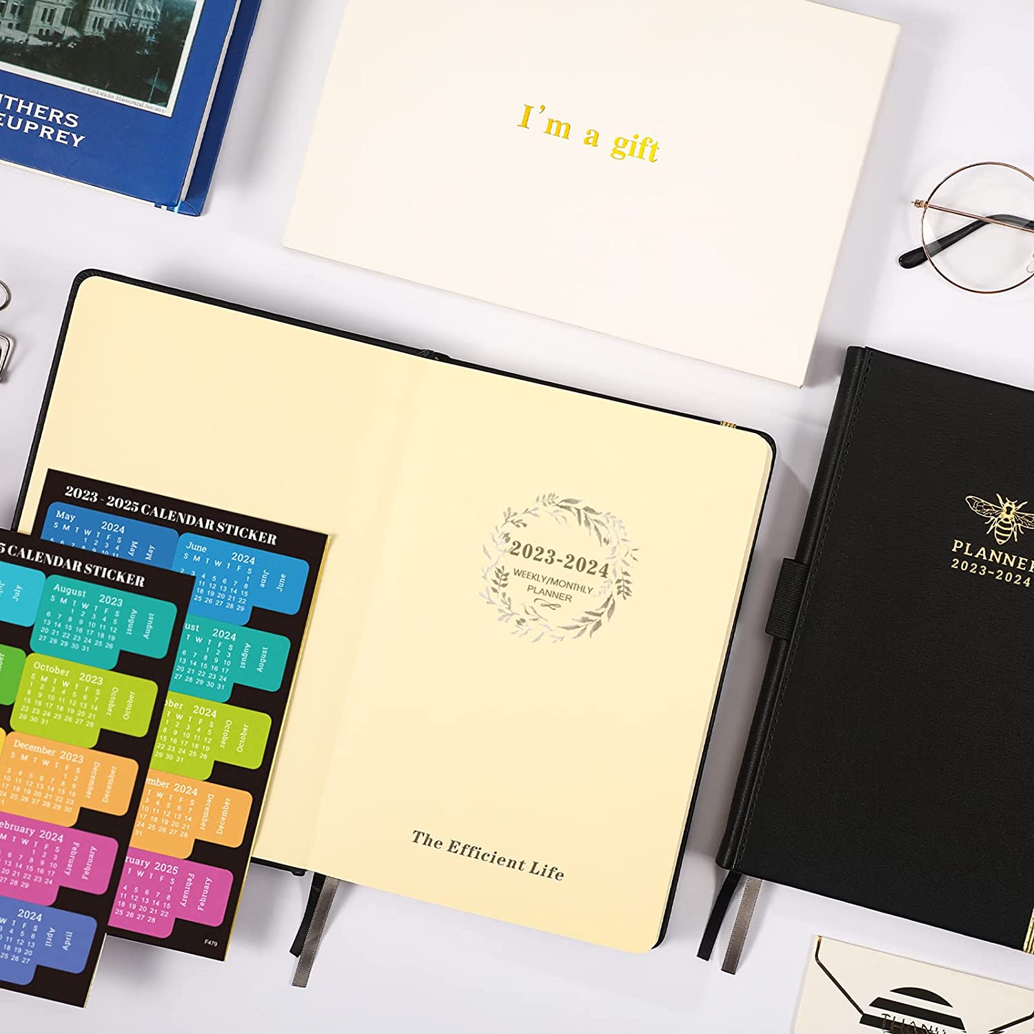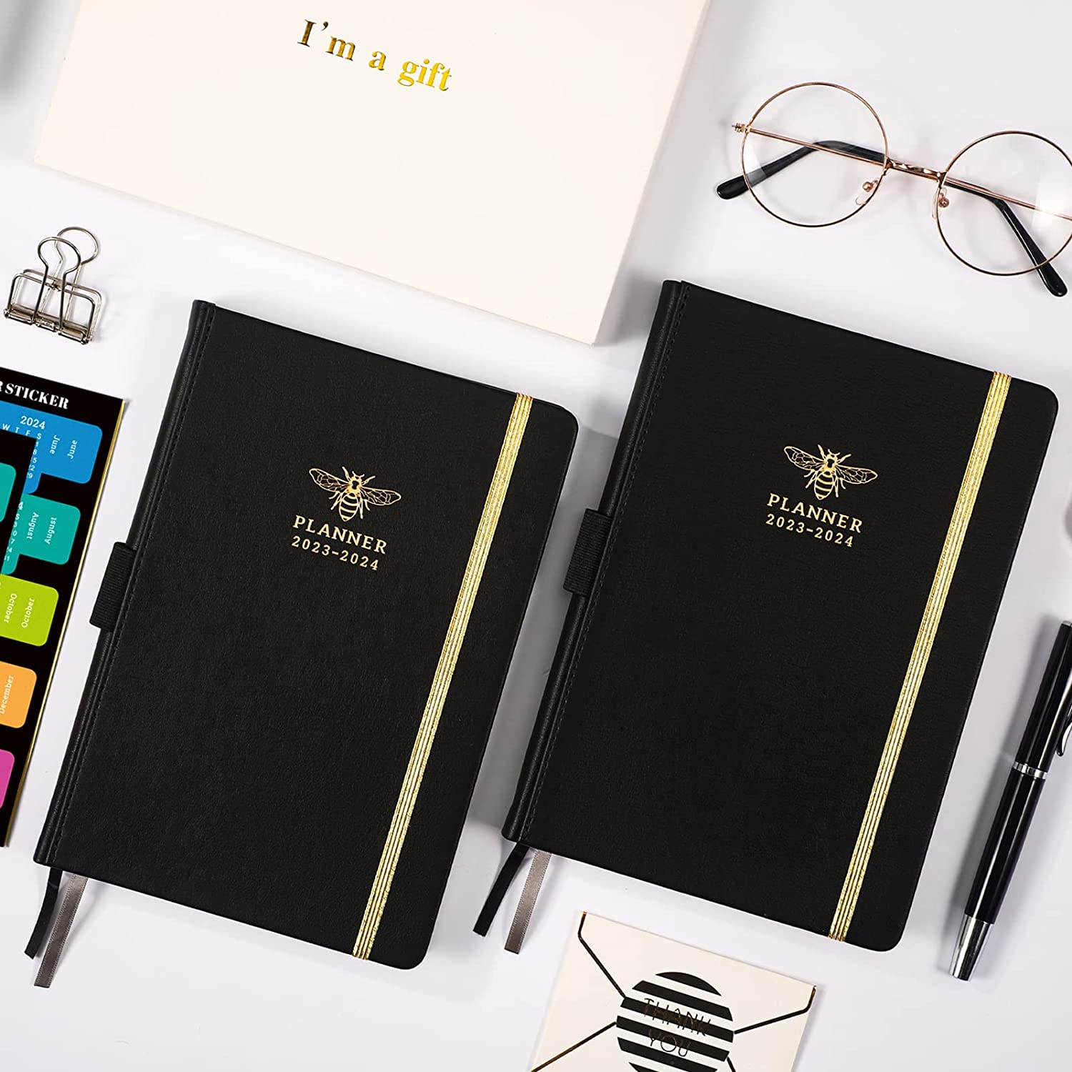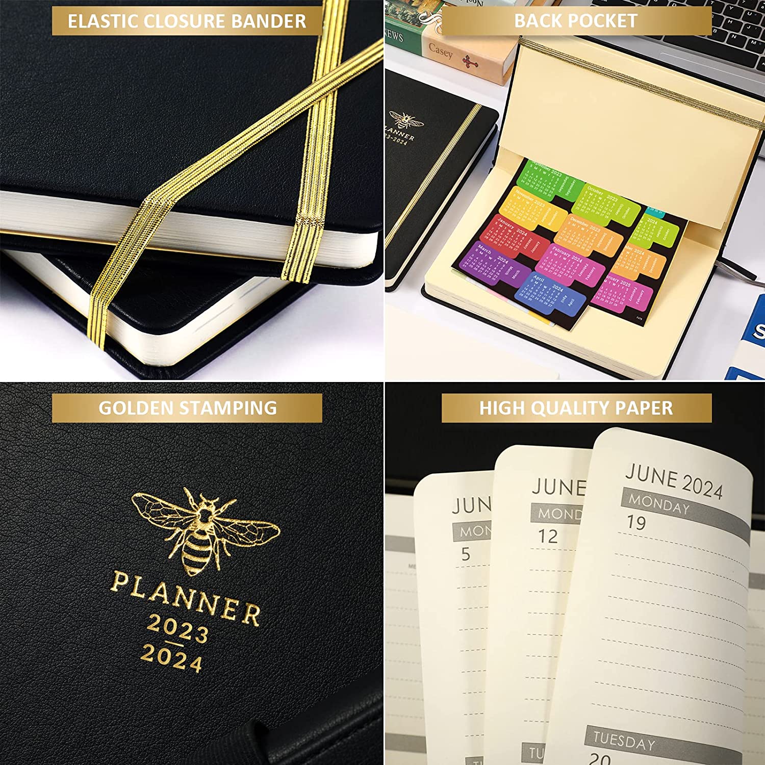 Planner 2023-2024 - Academic Planner 2023-2024 from July 2023 - June 2024, 2023-2024 Weekly Monthly Planner with Calendar Stickers, 5.75" x 8.25", Saffiano Leather, Pen Loop, Back Pocket - Black Bee