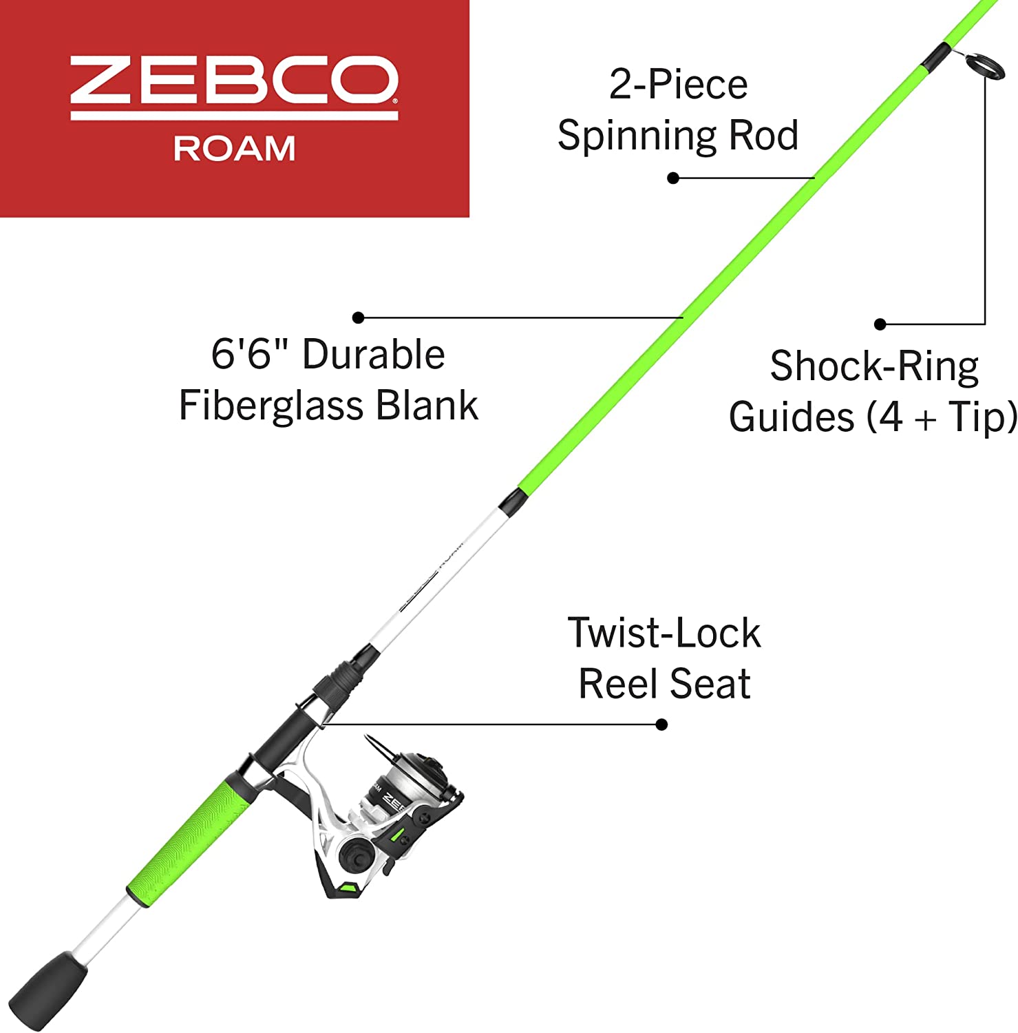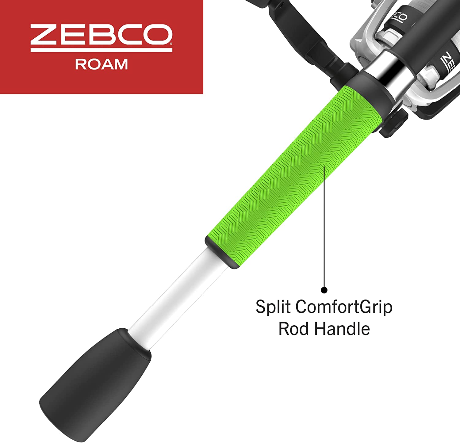 Zebco Roam Spinning Reel and Fishing Rod Combo, Split ComfortGrip Rod Handle, Soft-Touch Handle Knob