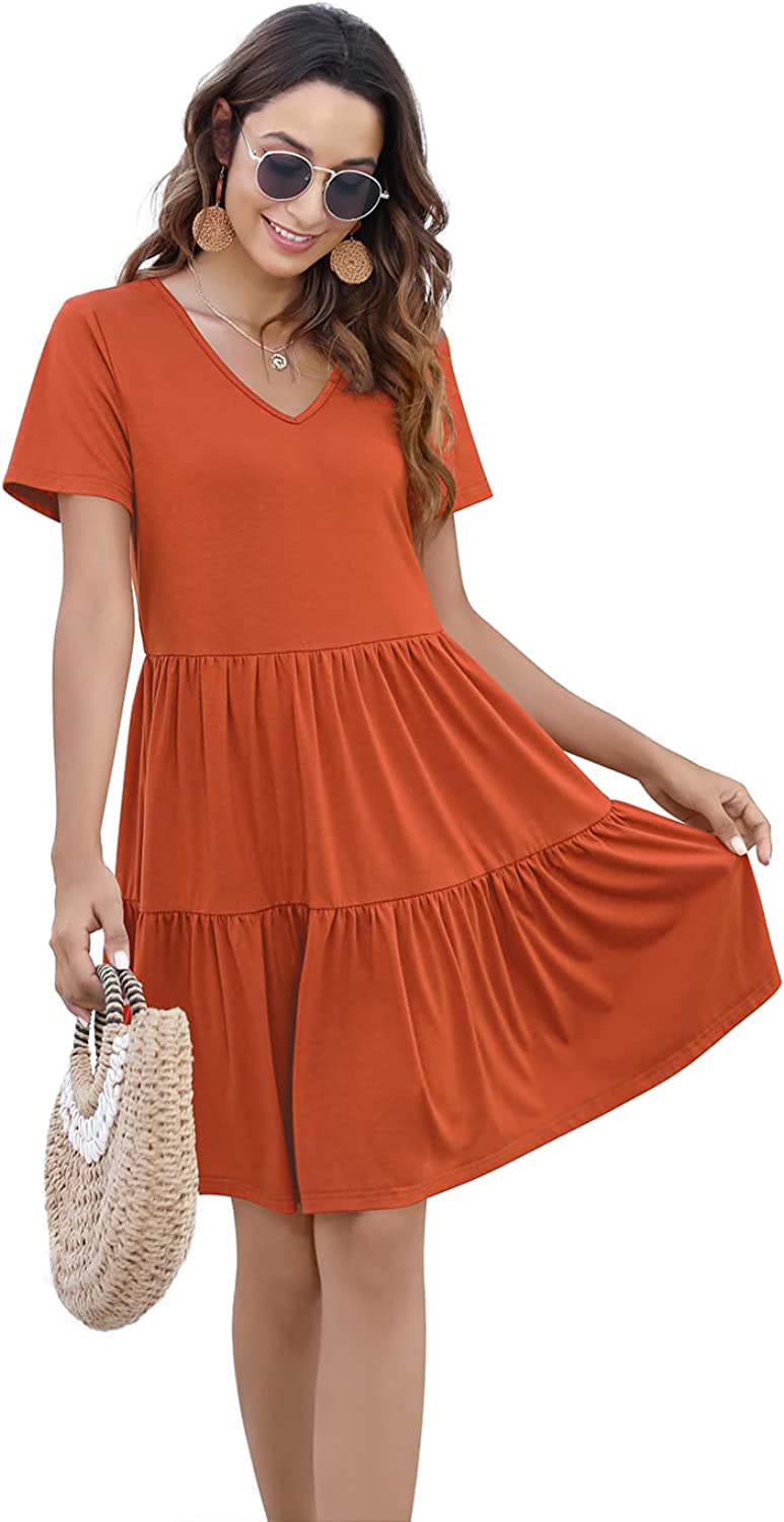 Match: Ruflle tunic flowy dresses for women is great pair with high heels, sandals or boots, tights, leggings, hat, or simply laying with coats, jackets in spring, fall and winter. You will leave a fantastic impression on vacation. Above knee length floral dress and flowy swing shift A-Line dress make you elegant and radiant. Super cute and beautiful babydoll mini dress can add your vitality and also nice for juniors dresses.